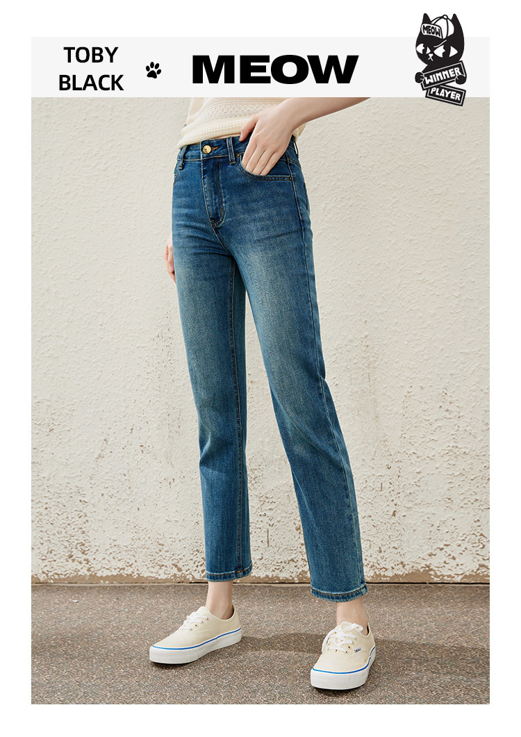 高腰休闲百搭经典款烟管裤春季街头风简约设计女式牛仔裤 230493