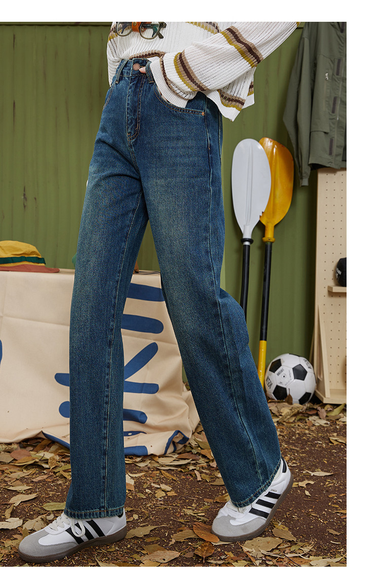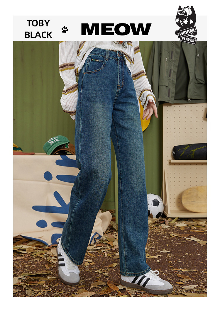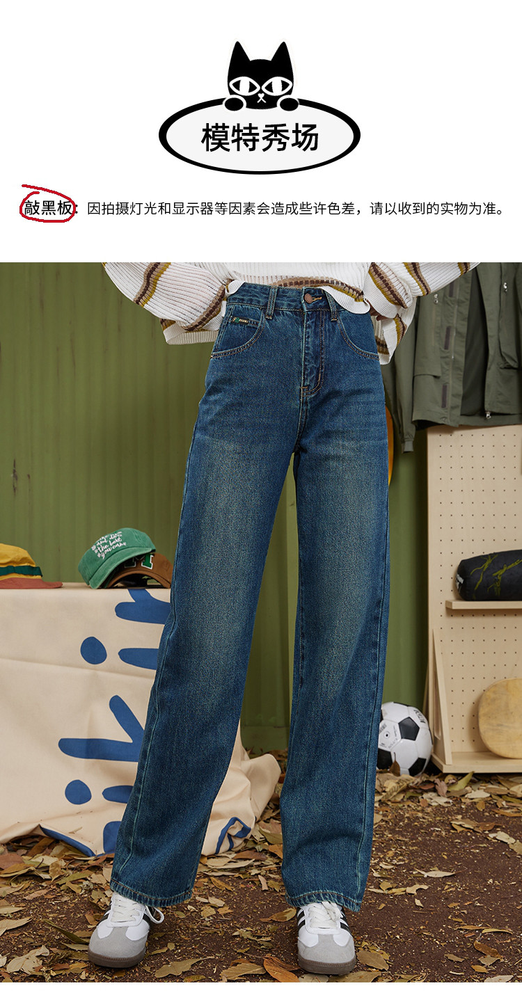 商品名称:高腰经典款水洗直筒裤夏季街头风遮肉显瘦休闲女式牛仔裤 194461