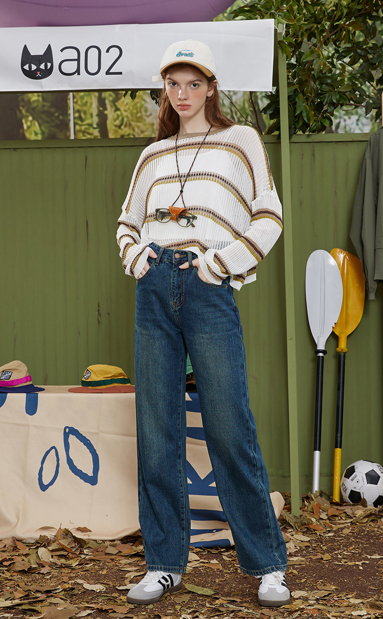 高腰经典款水洗直筒裤夏季街头风遮肉显瘦休闲女式牛仔裤 194461