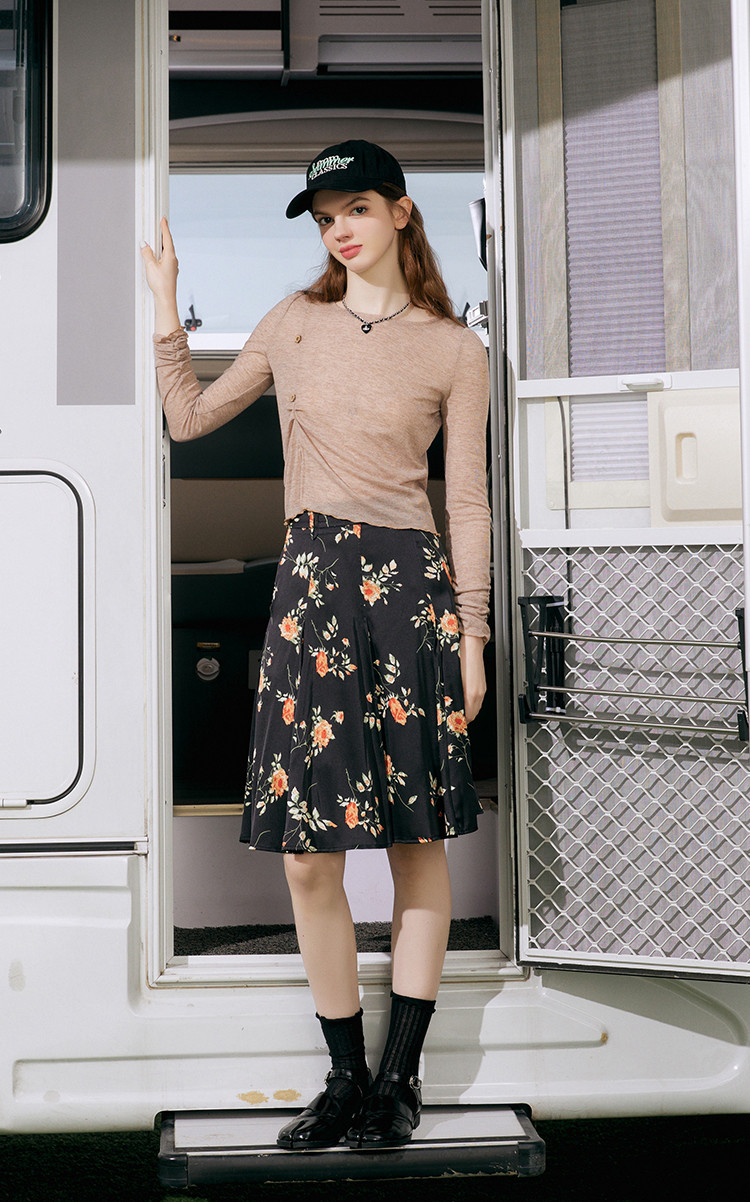 商品名称:设计师款花卉图案印花伞裙高腰半身裙夏季休闲气质半截裙 321757