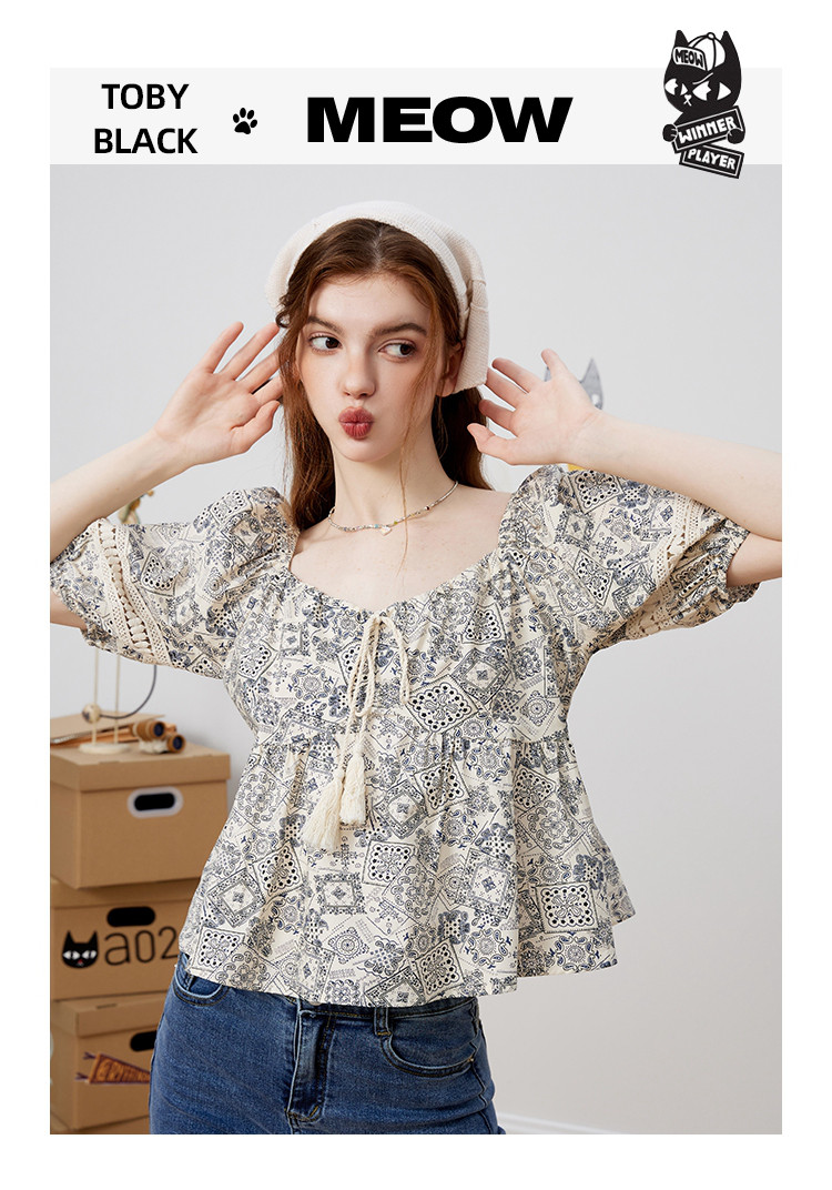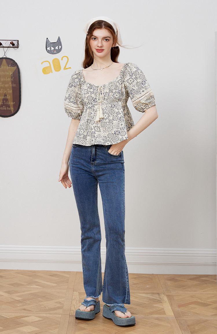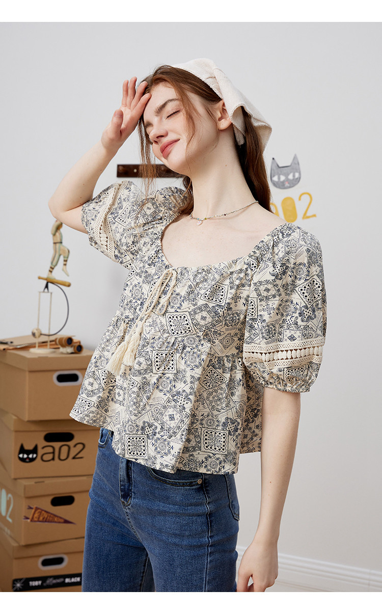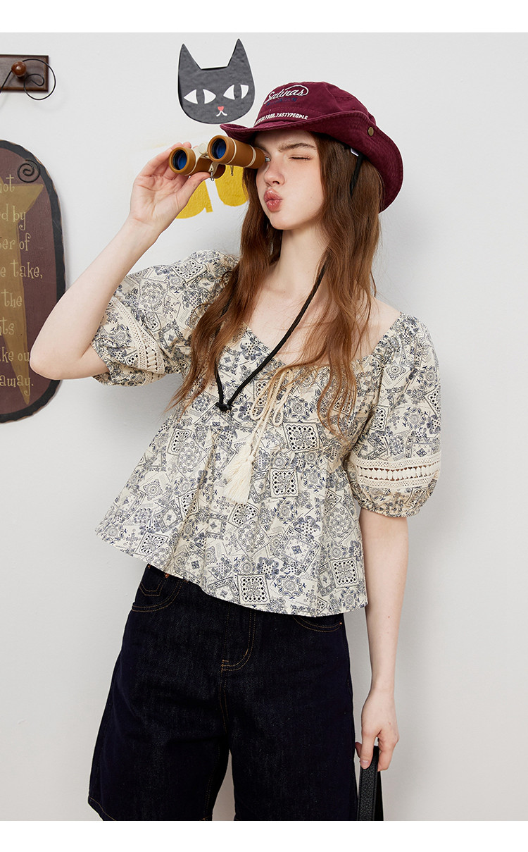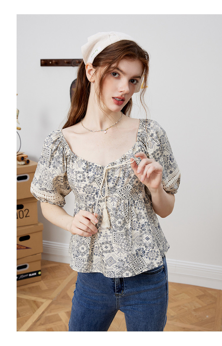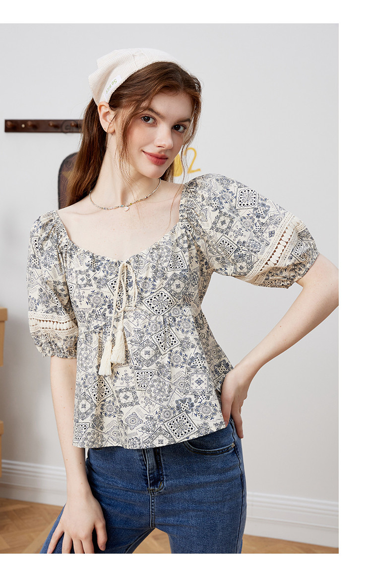 商品名称:【100%棉】国风碎花显瘦流苏设计感短袖夏季女式衬衫 617757