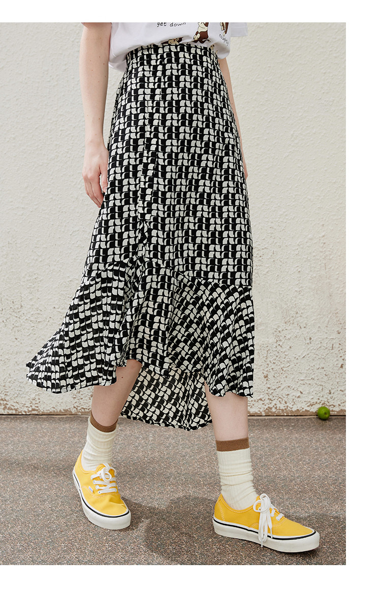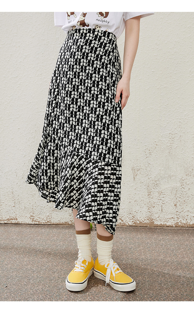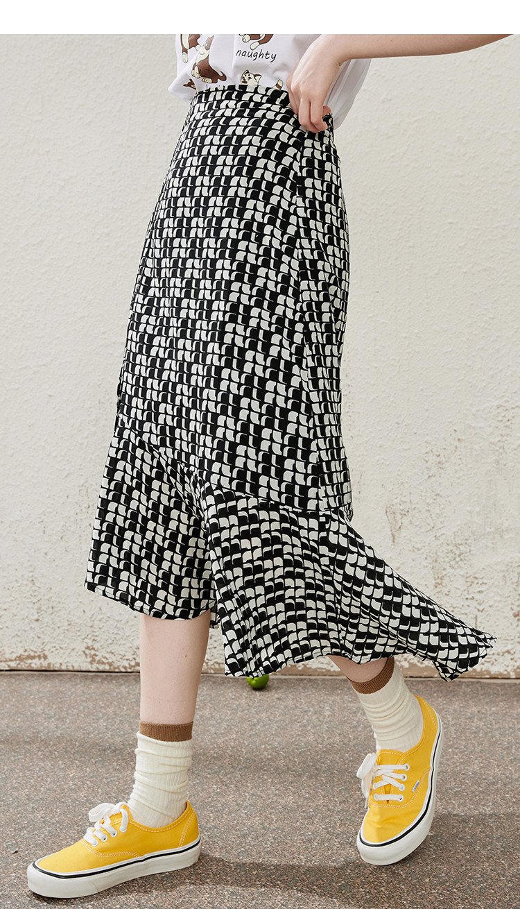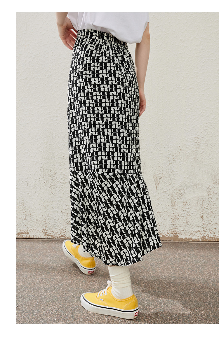 满印花高腰设计中长款鱼尾裙夏季小众休闲百搭气质半截裙 802013