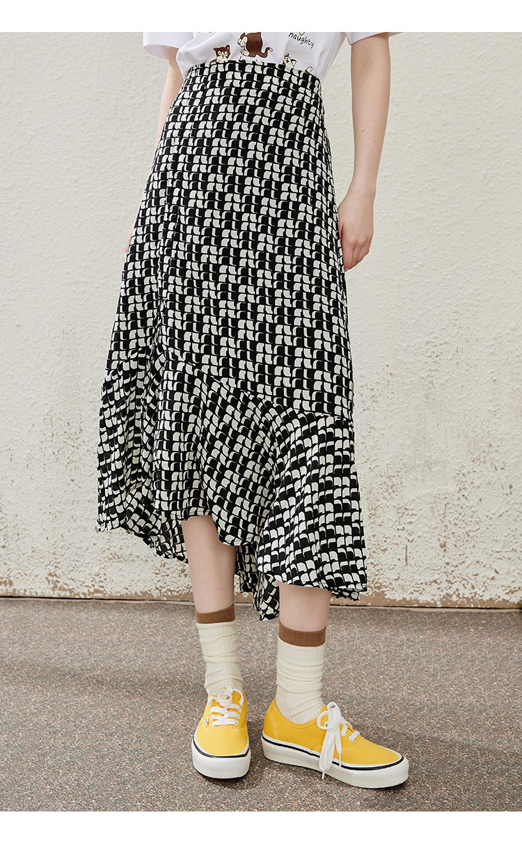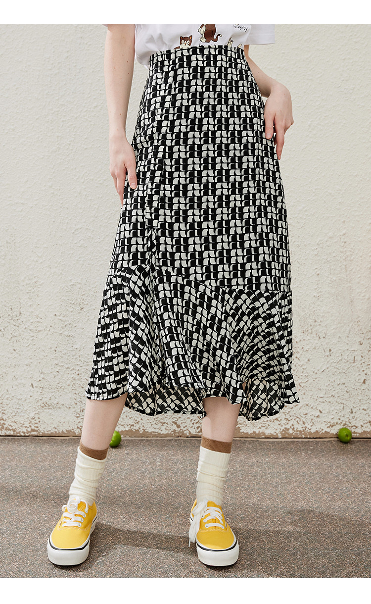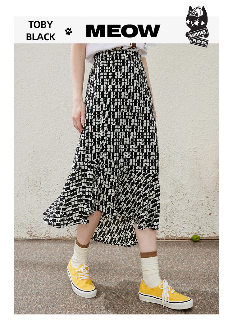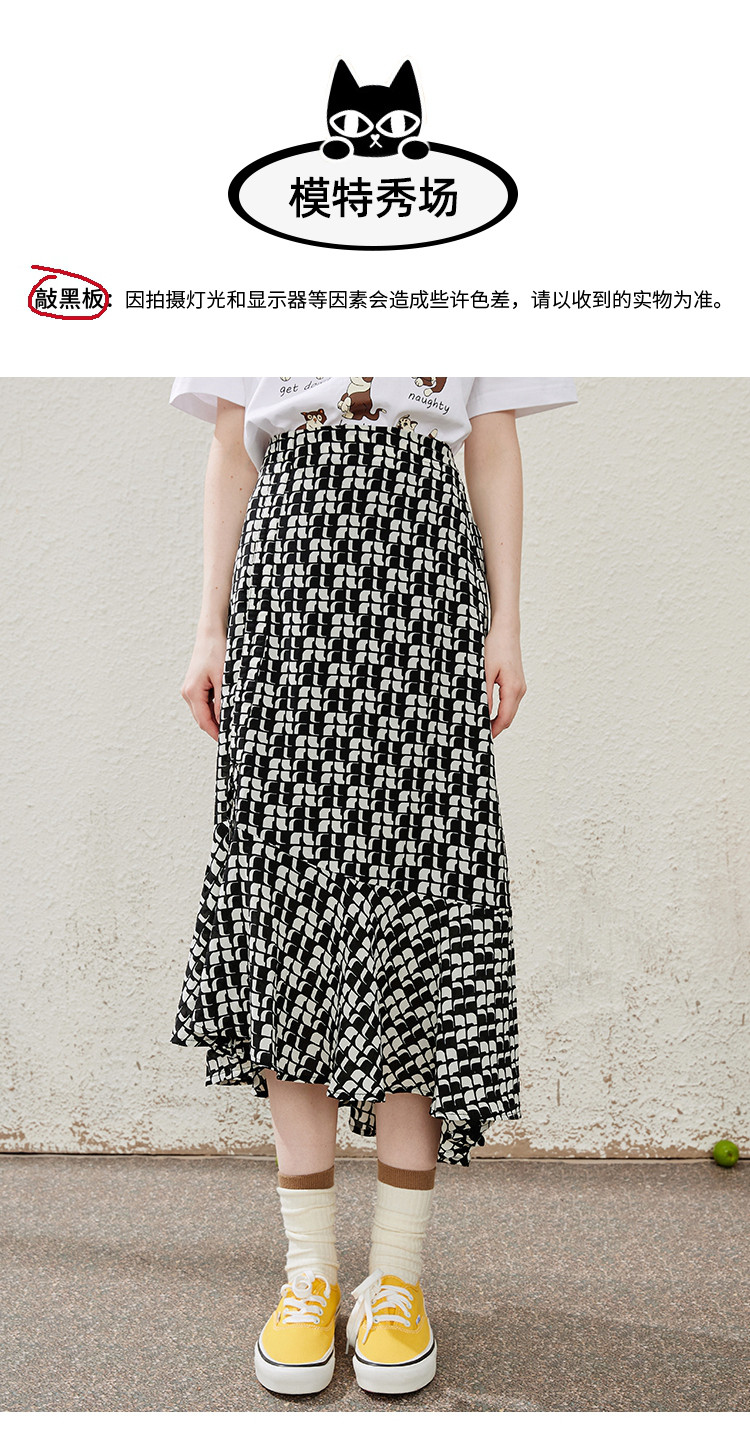 商品名称:满印花高腰设计中长款鱼尾裙夏季小众休闲百搭气质半截裙 802013