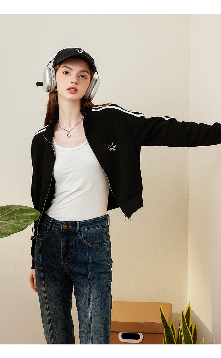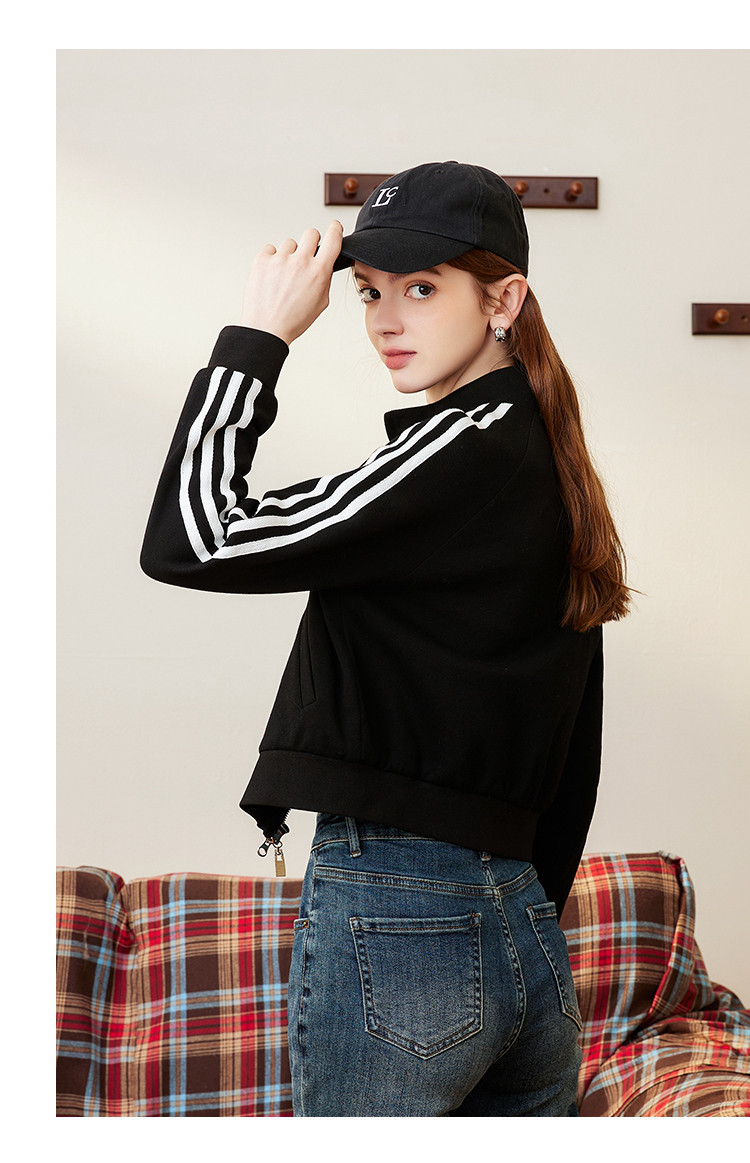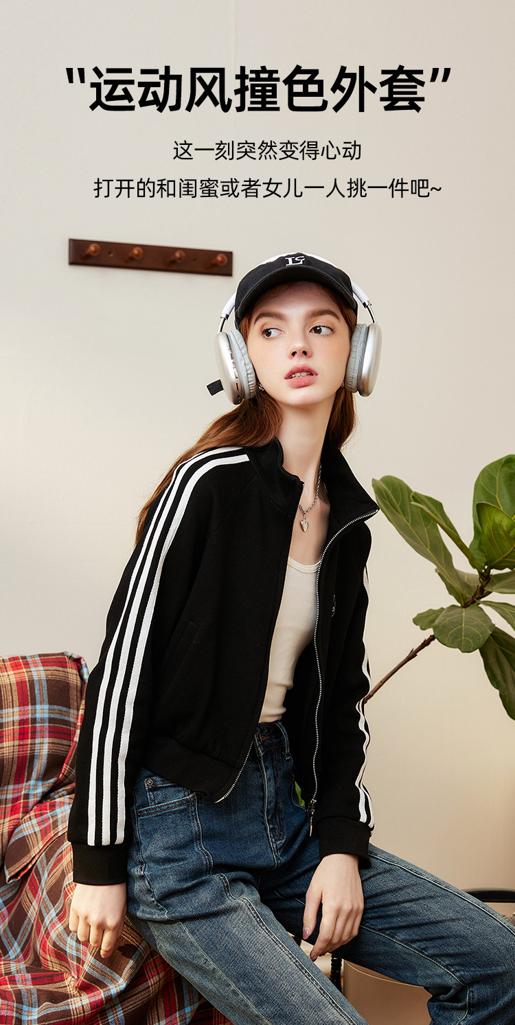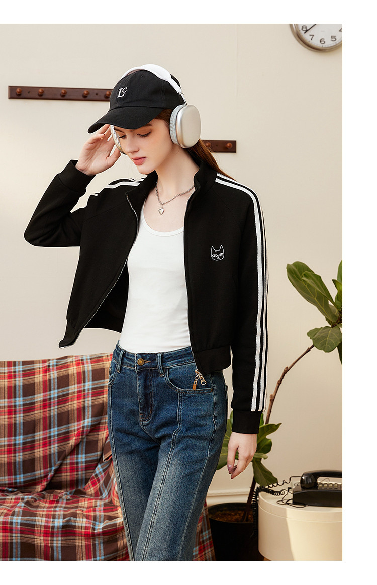 运动风小个子IP绣花撞色泽西风设计休闲女式外套春季长袖上衣 801117