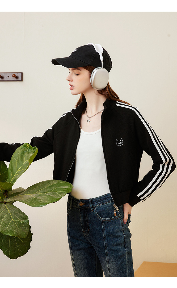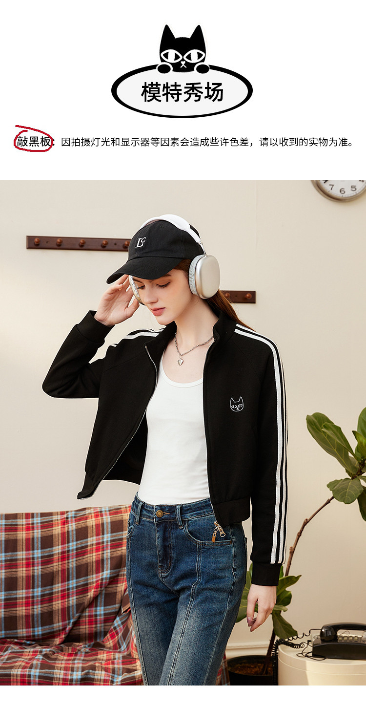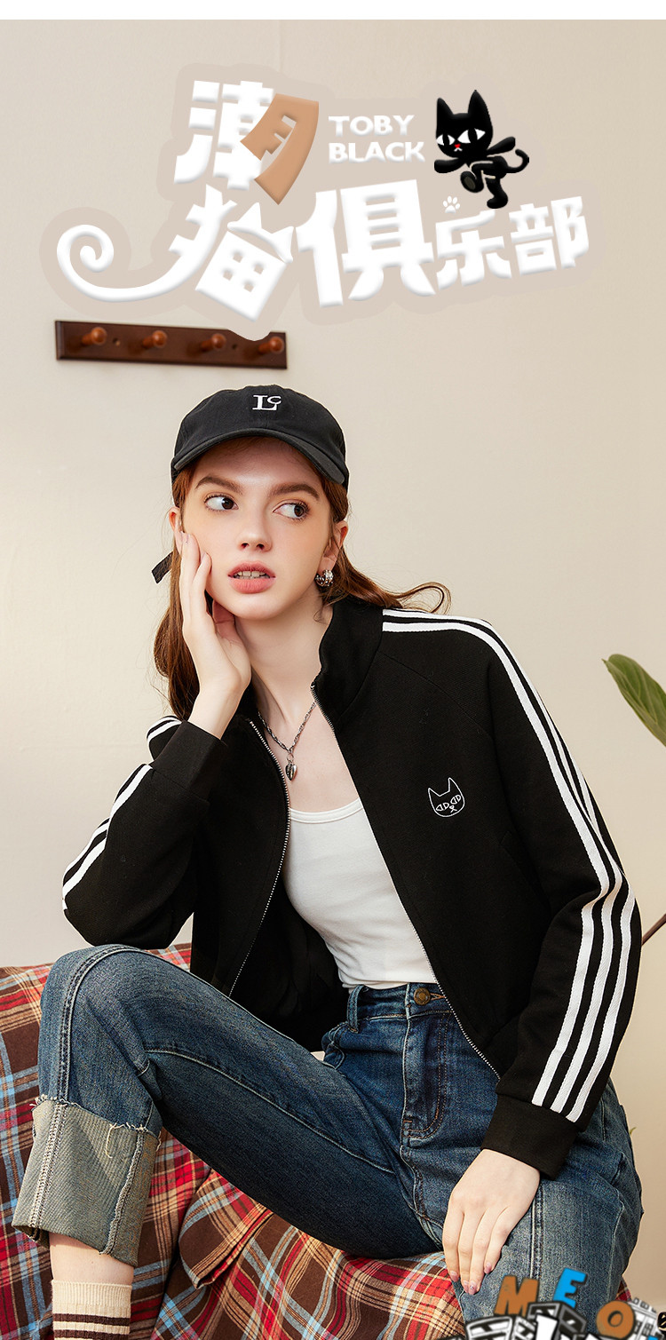 商品名称:运动风小个子IP绣花撞色泽西风设计休闲女式外套春季长袖上衣 801117