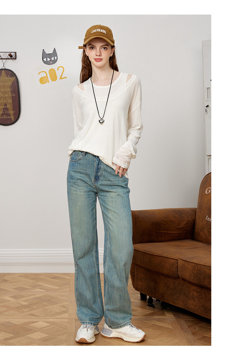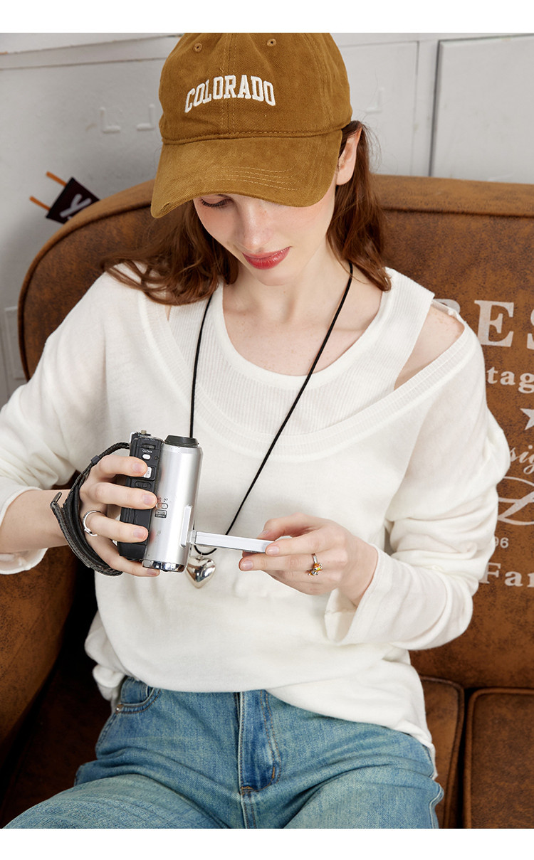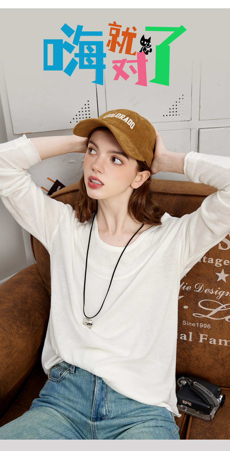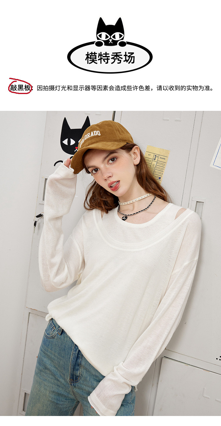 商品名称:【春日浪漫】春夏款叠穿漏肩假两件简约女式宽松针织衫潮 831389