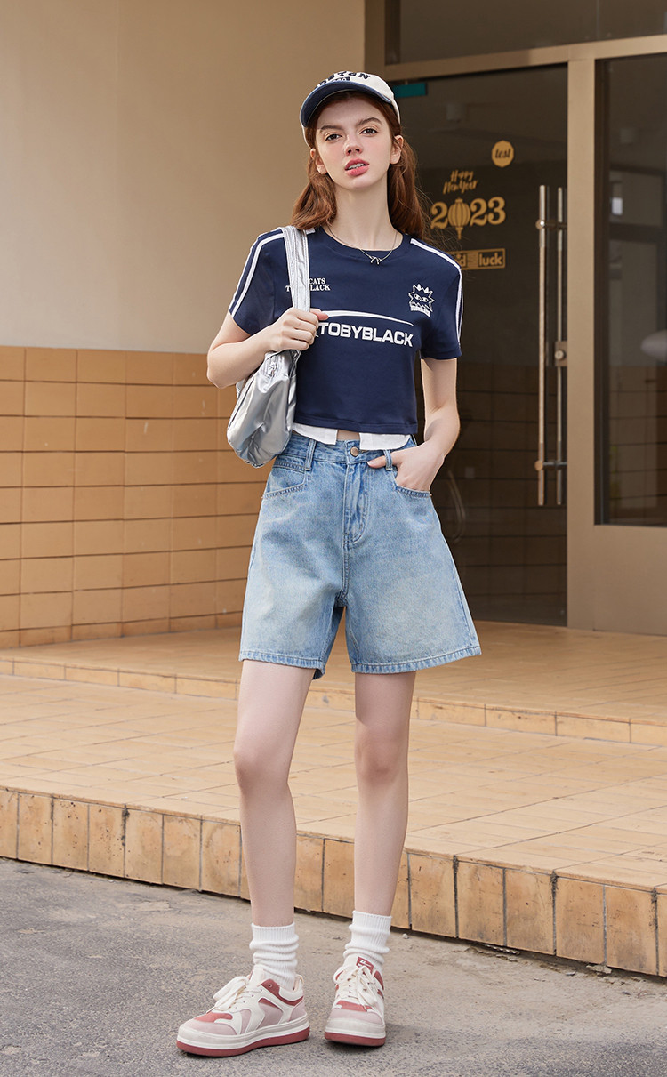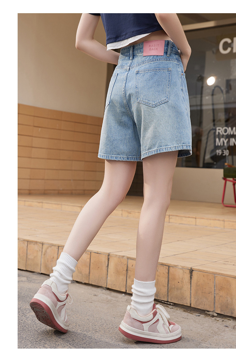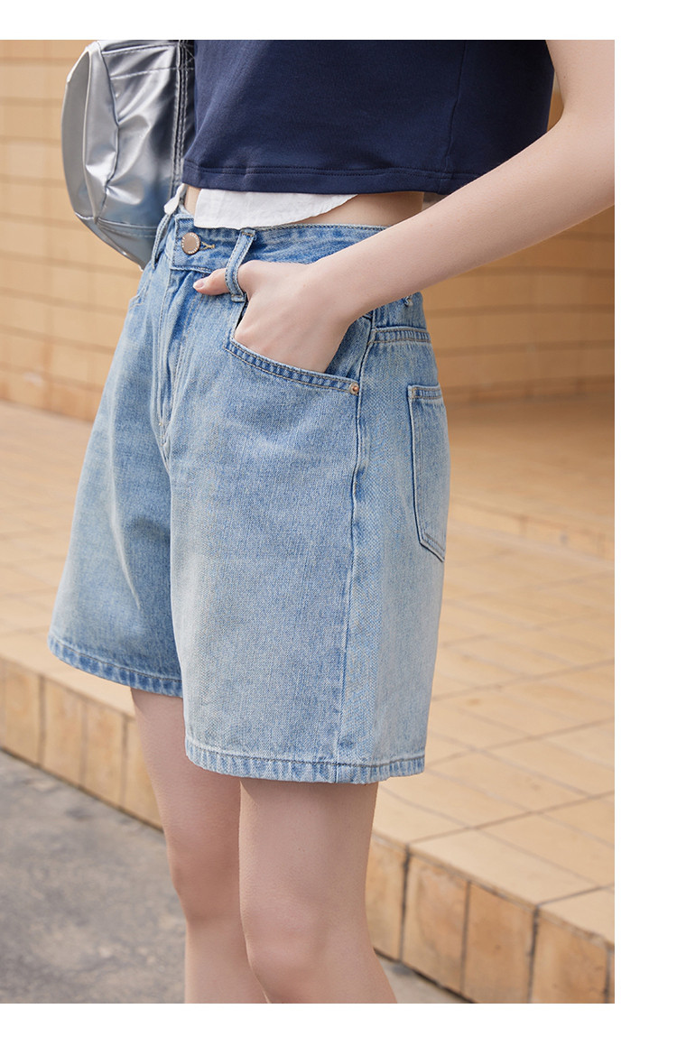 休闲直筒辣妹风百搭短裤夏季经典款高腰显腿长女式牛仔裤 728349