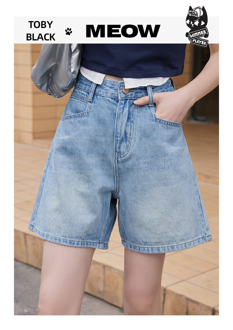 商品名称:休闲直筒辣妹风百搭短裤夏季经典款高腰显腿长女式牛仔裤 728349