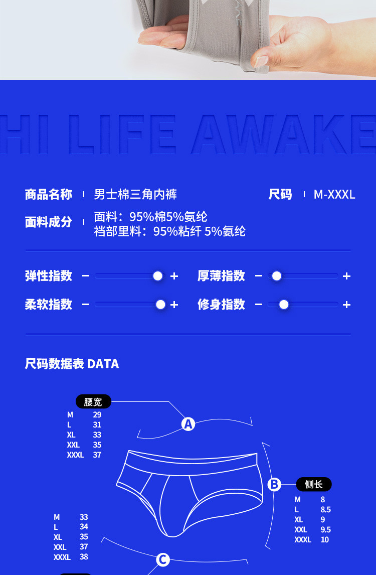 商品名称:【95%棉 3A抑菌】4条装男士内裤三角裤夏季透气短裤男性感 204122