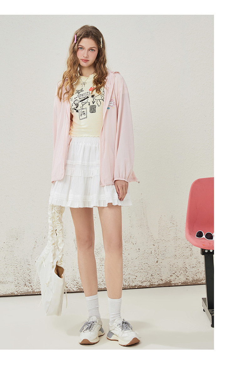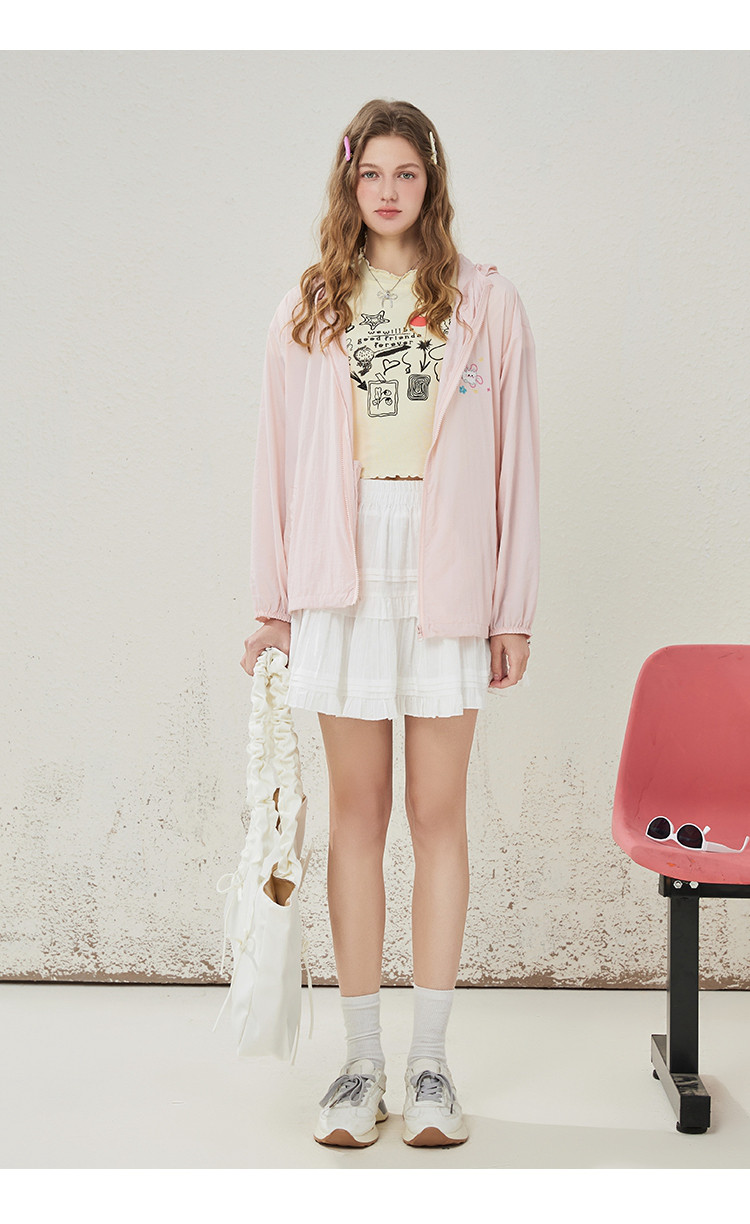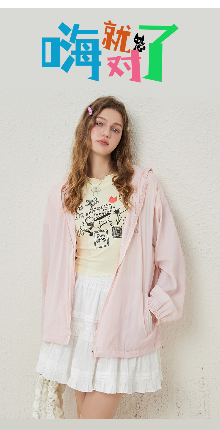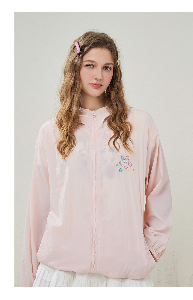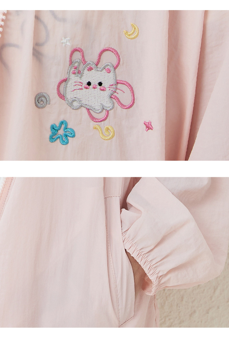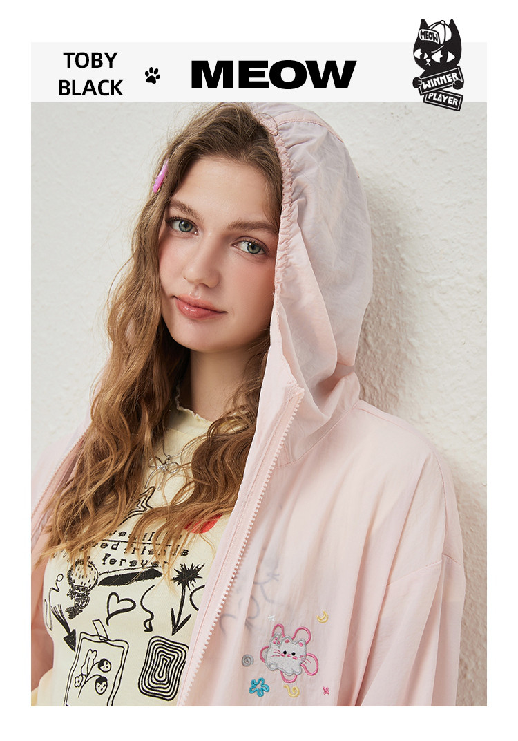 商品名称:可爱绣花猫咪户外薄款女式外套夏季休闲宽松连帽长袖上衣 148445