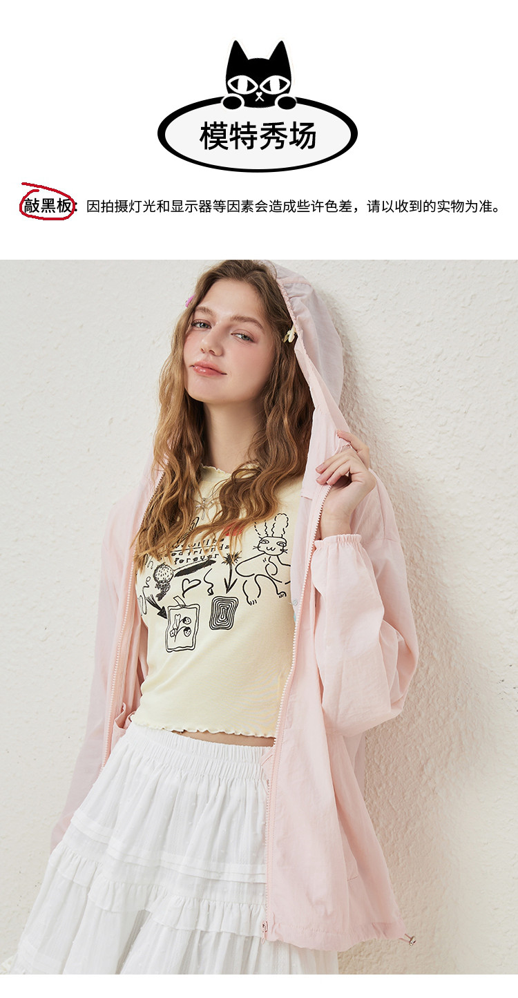 可爱绣花猫咪户外薄款女式外套夏季休闲宽松连帽长袖上衣 148445