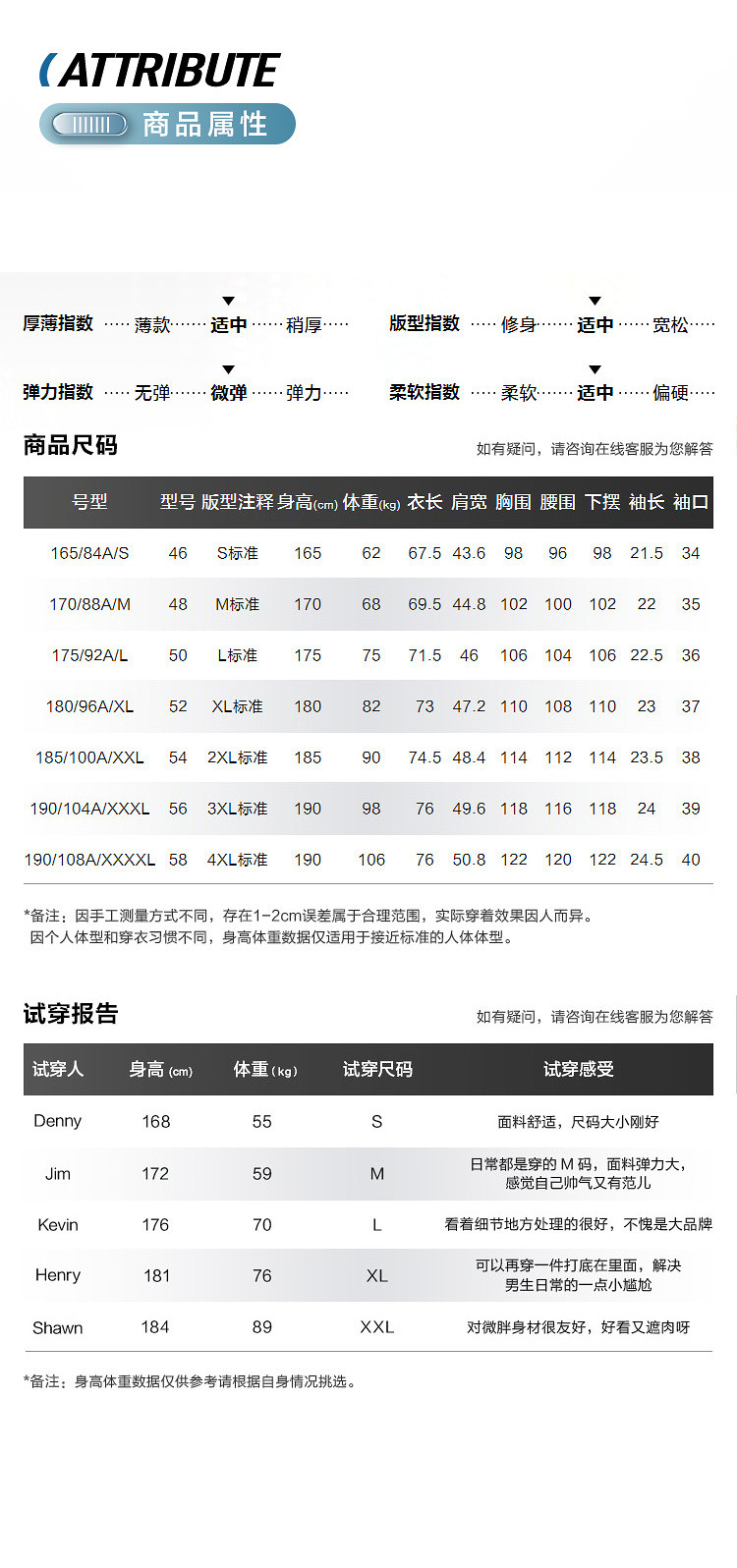 | 尺码 | 衣长(cm) | 肩宽(cm) | 腰围(cm) | 袖长(cm) | 胸围(cm) | 下摆围(cm) | 号型 |