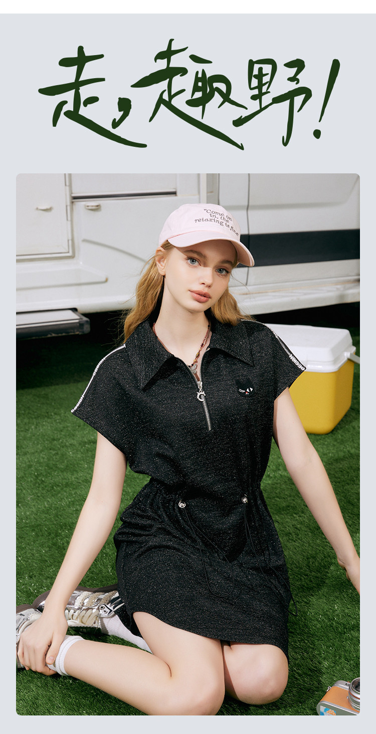 收腰休闲设计感短袖连衣裙夏季遮肉百搭翻领气质A字裙 839581