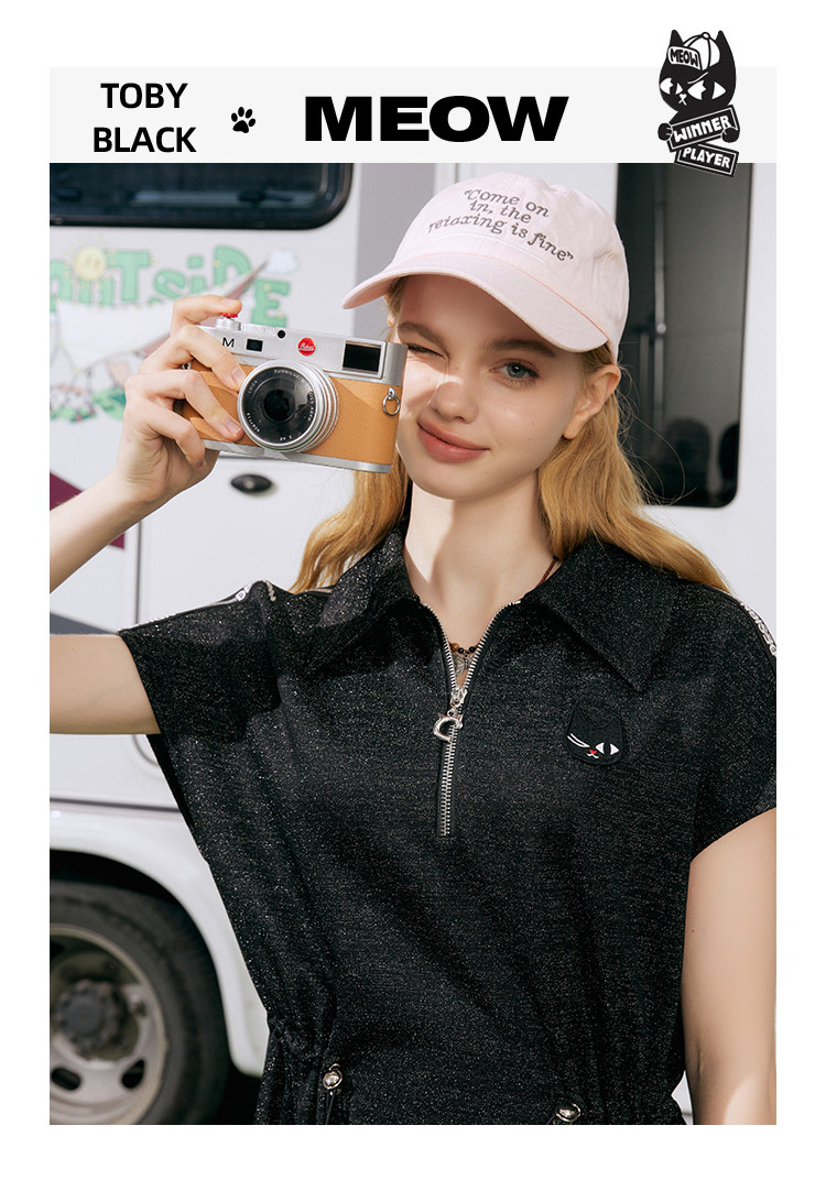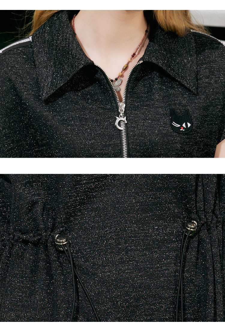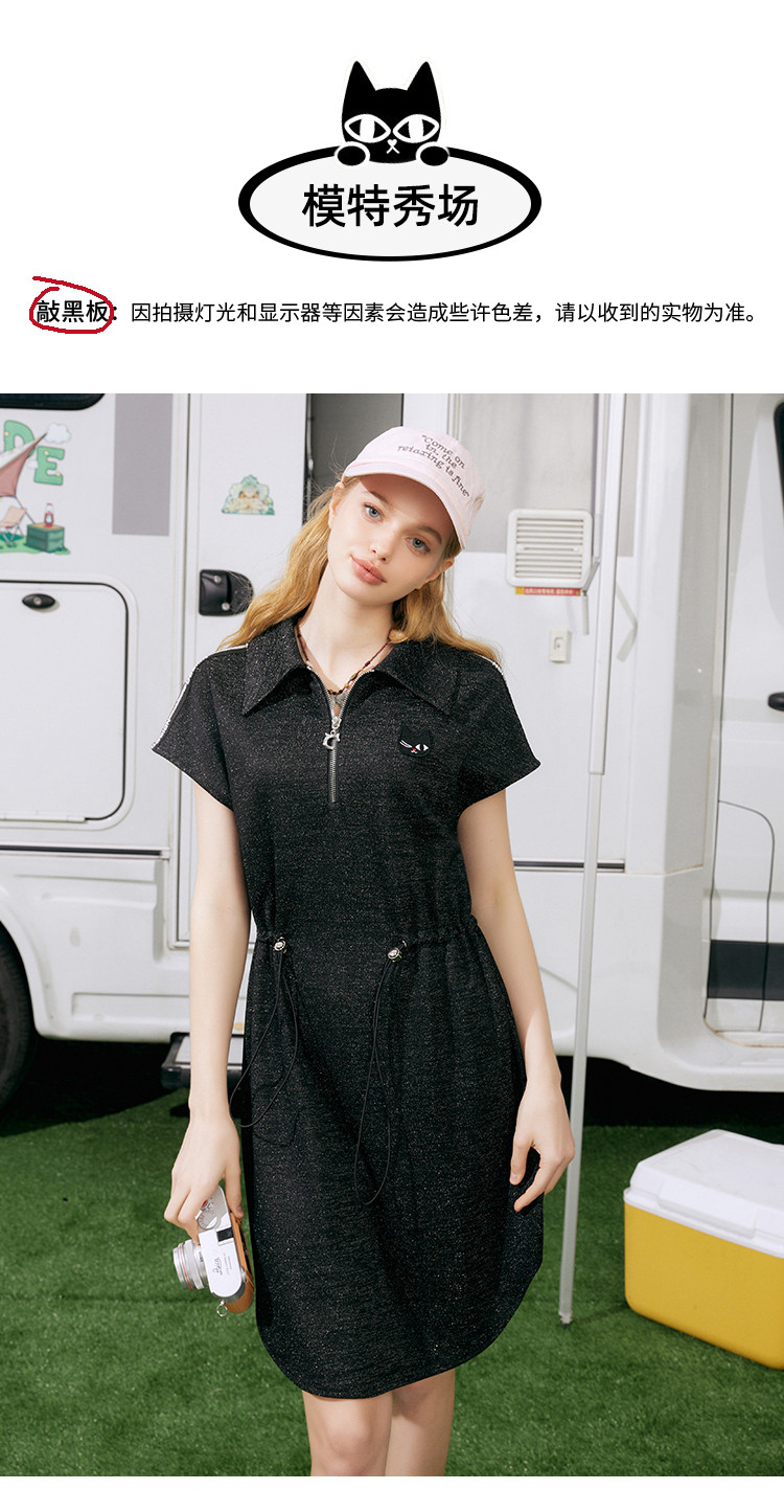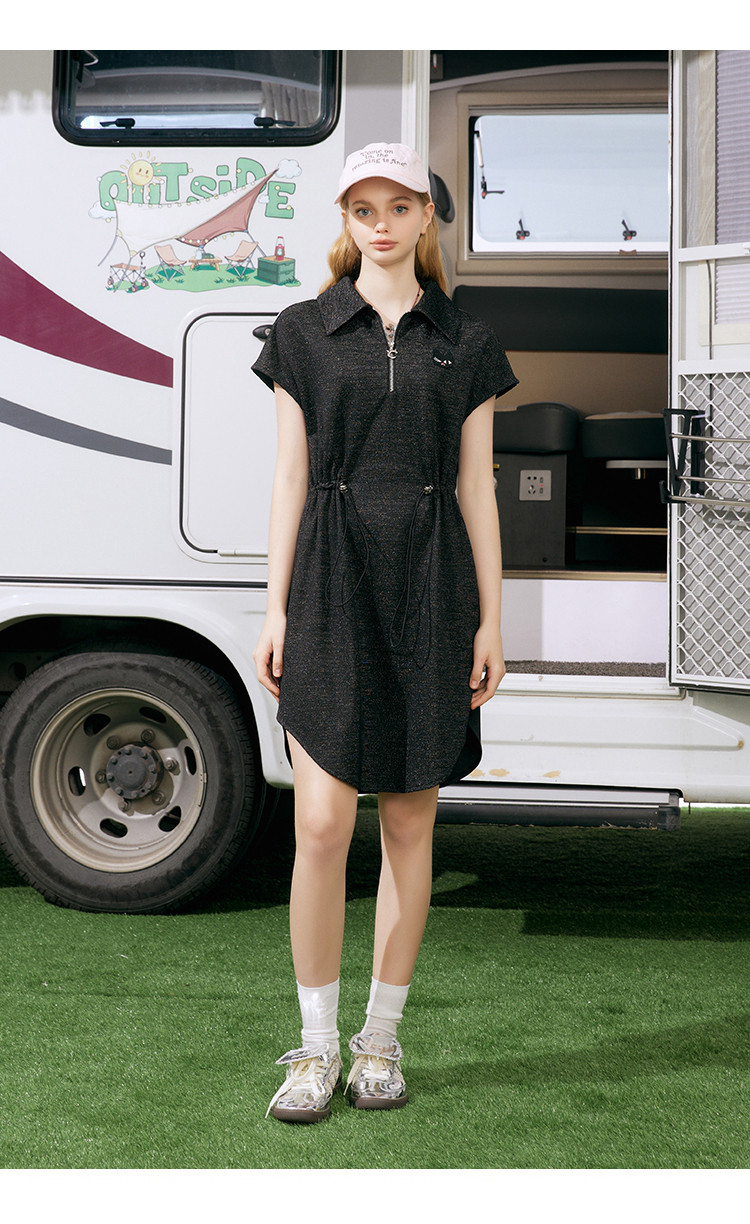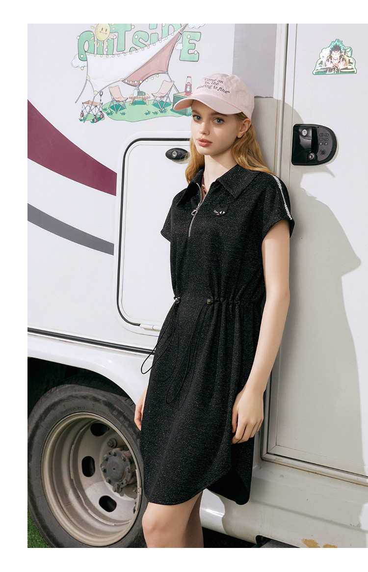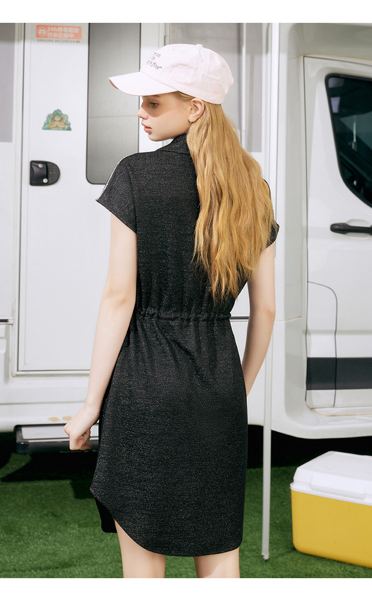 商品名称:收腰休闲设计感短袖连衣裙夏季遮肉百搭翻领气质A字裙 839581