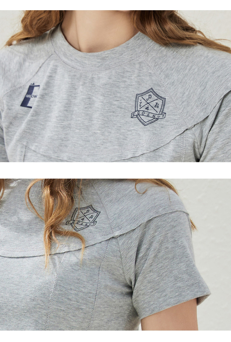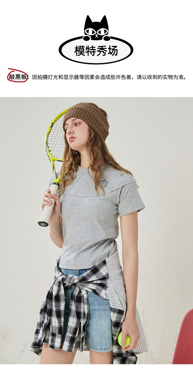 商品名称:设计师款拼接设计感印花女式T恤夏季修身圆领短袖上衣 372765