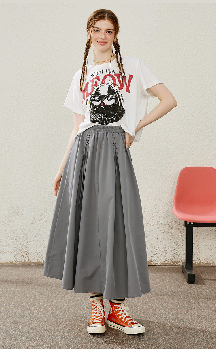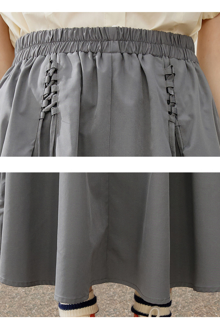 复古工装抽绳设计感长款伞裙夏季纯色简约收腰休闲半截裙 859229
