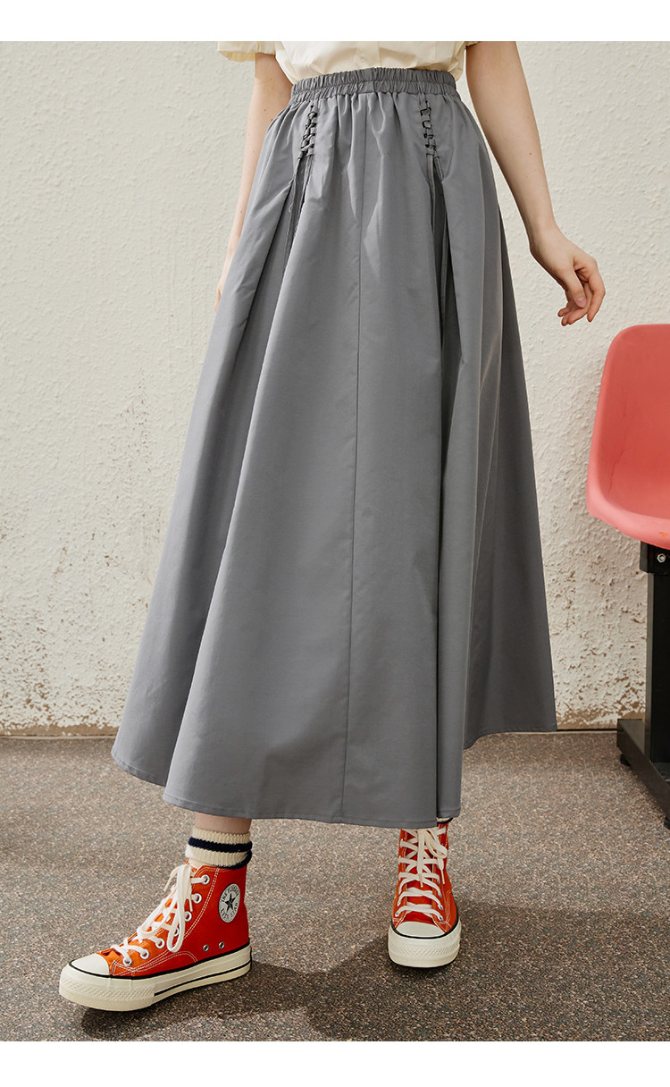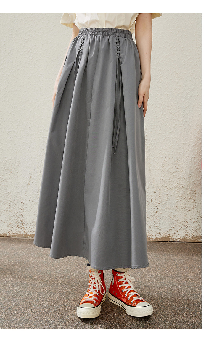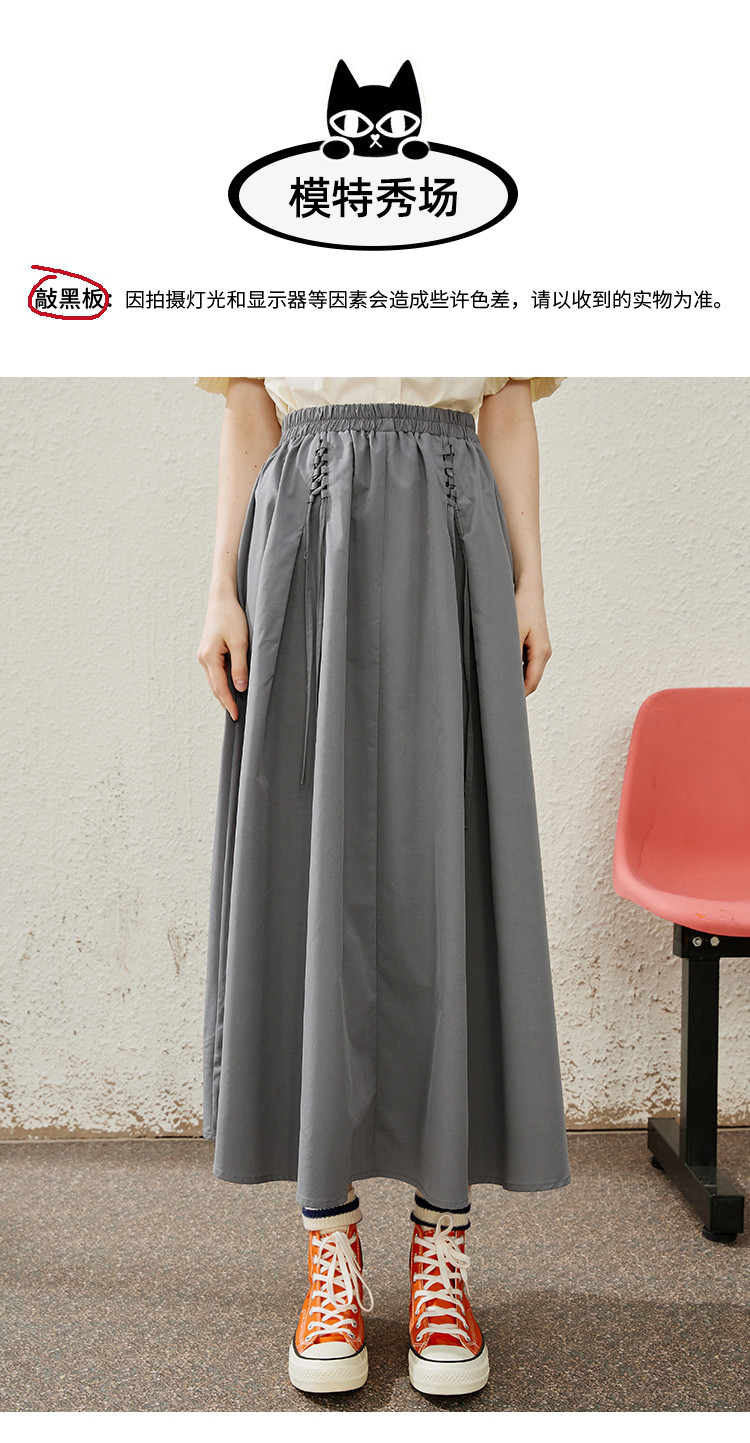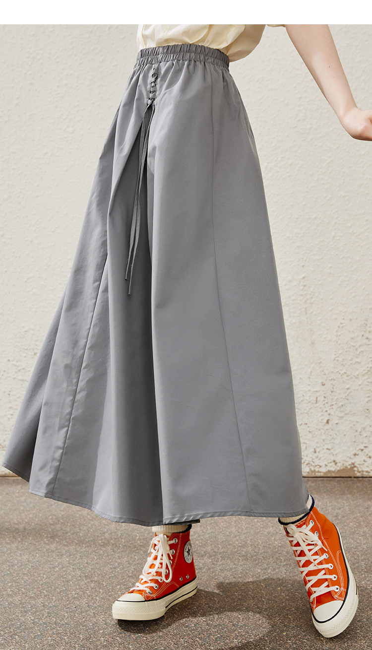 商品名称:复古工装抽绳设计感长款伞裙夏季纯色简约收腰休闲半截裙 859229