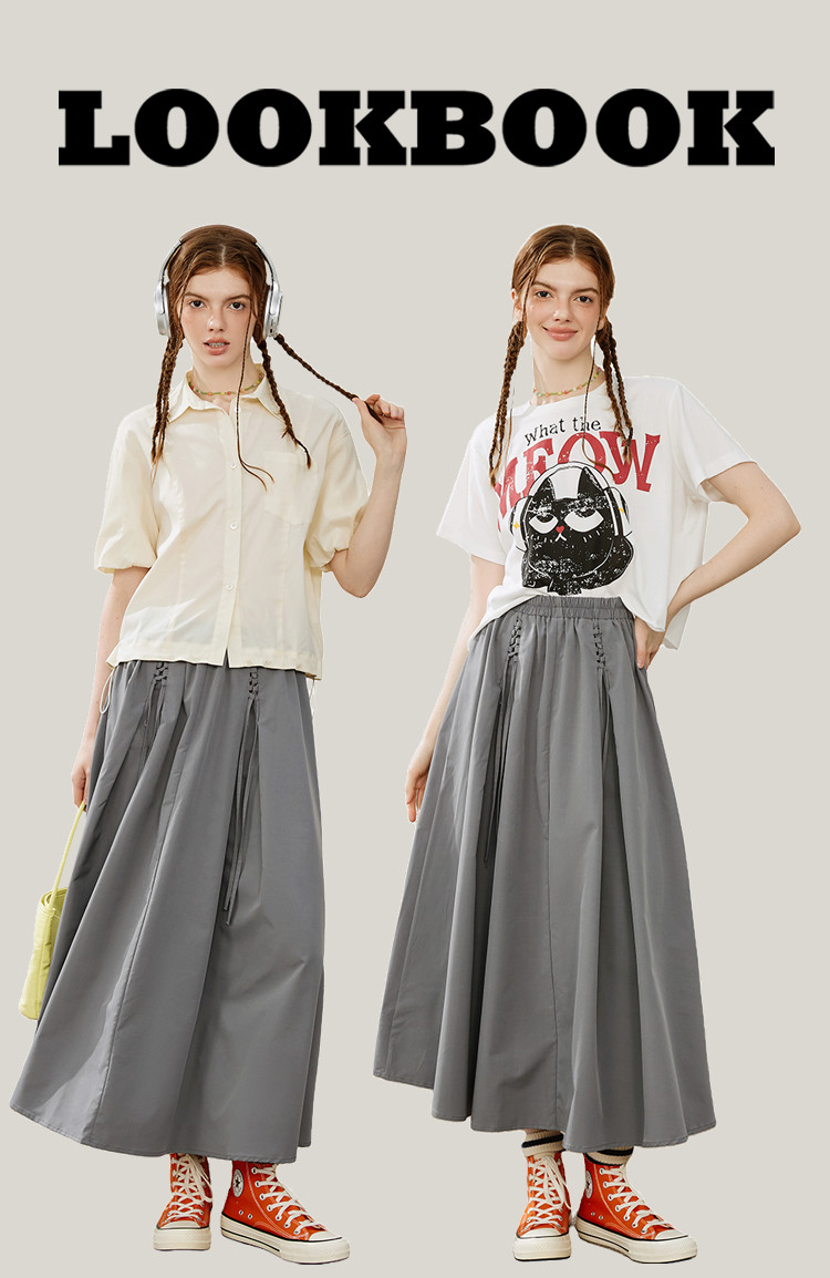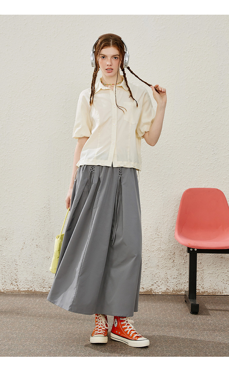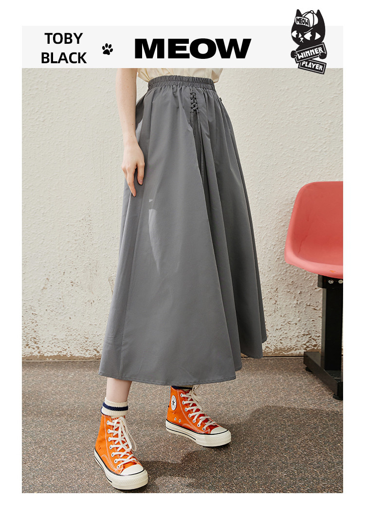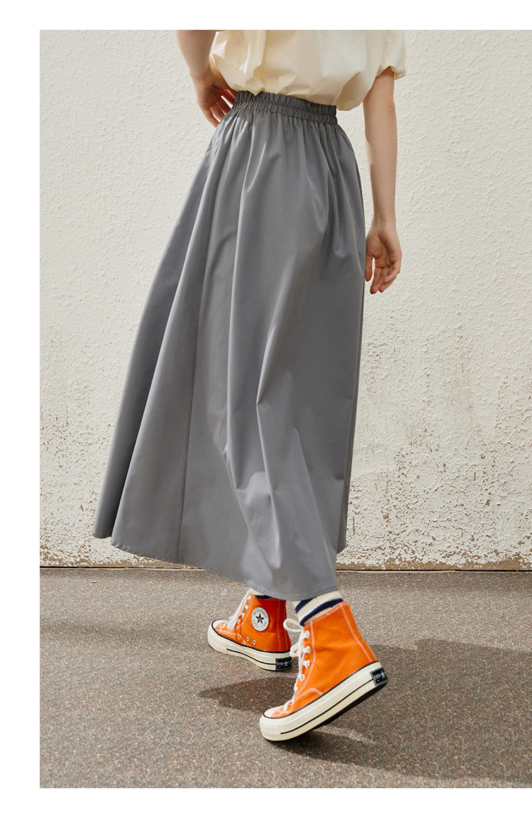 商品名称:复古工装抽绳设计感长款伞裙夏季纯色简约收腰休闲半截裙 859229