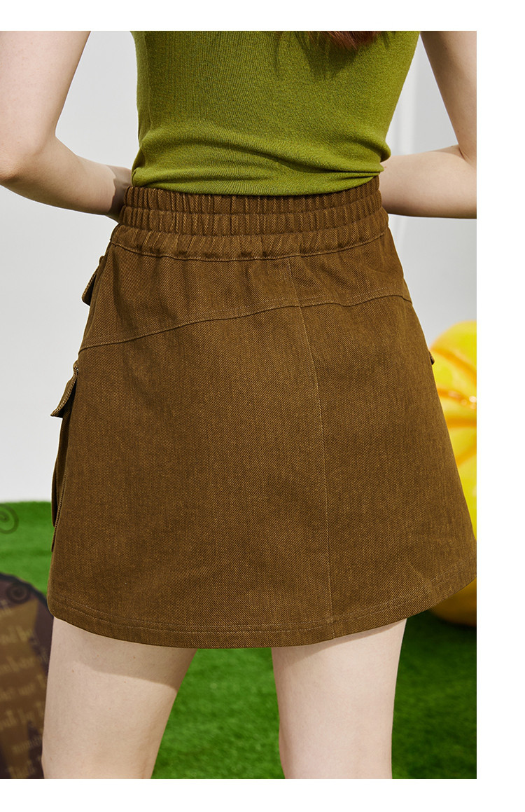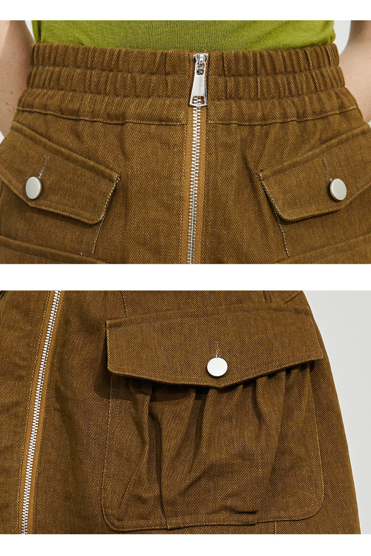 商品名称:复古洗旧多口袋拉链短款牛仔裙夏季个性设计感半截裙 581661