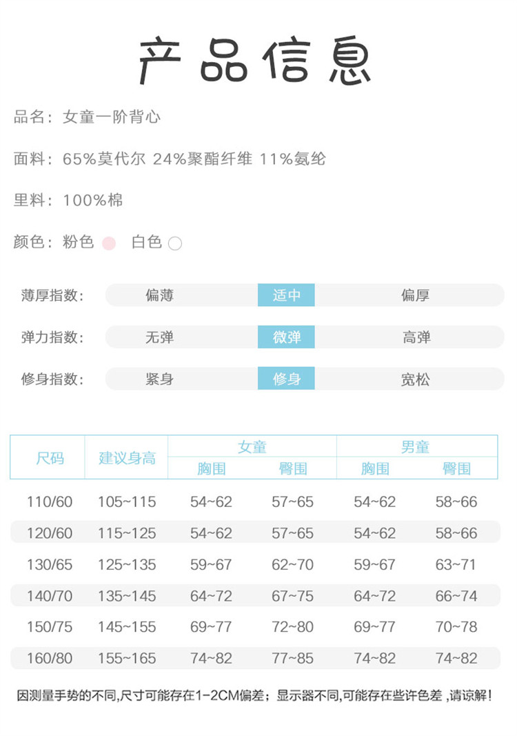 商品名称:网眼透气女童一阶舒适莫代尔内衣可爱印花儿童背心透气背心棉内里 627547