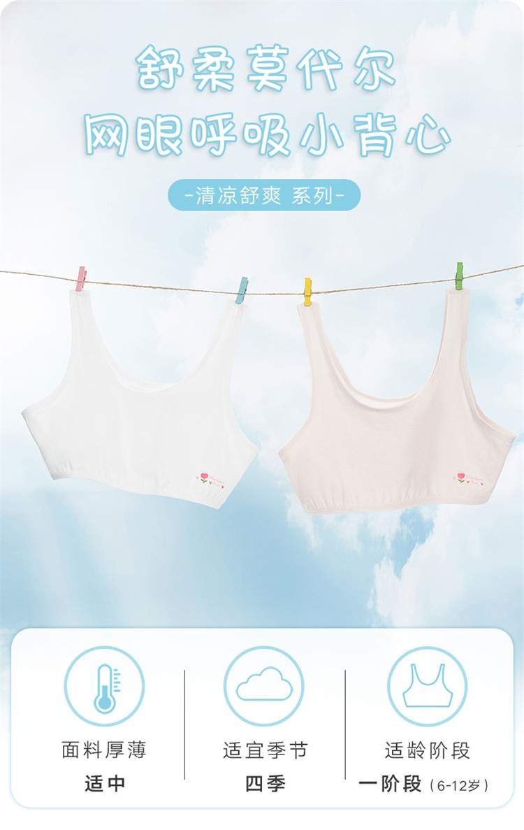 网眼透气女童一阶舒适莫代尔内衣可爱印花儿童背心透气背心棉内里 627547