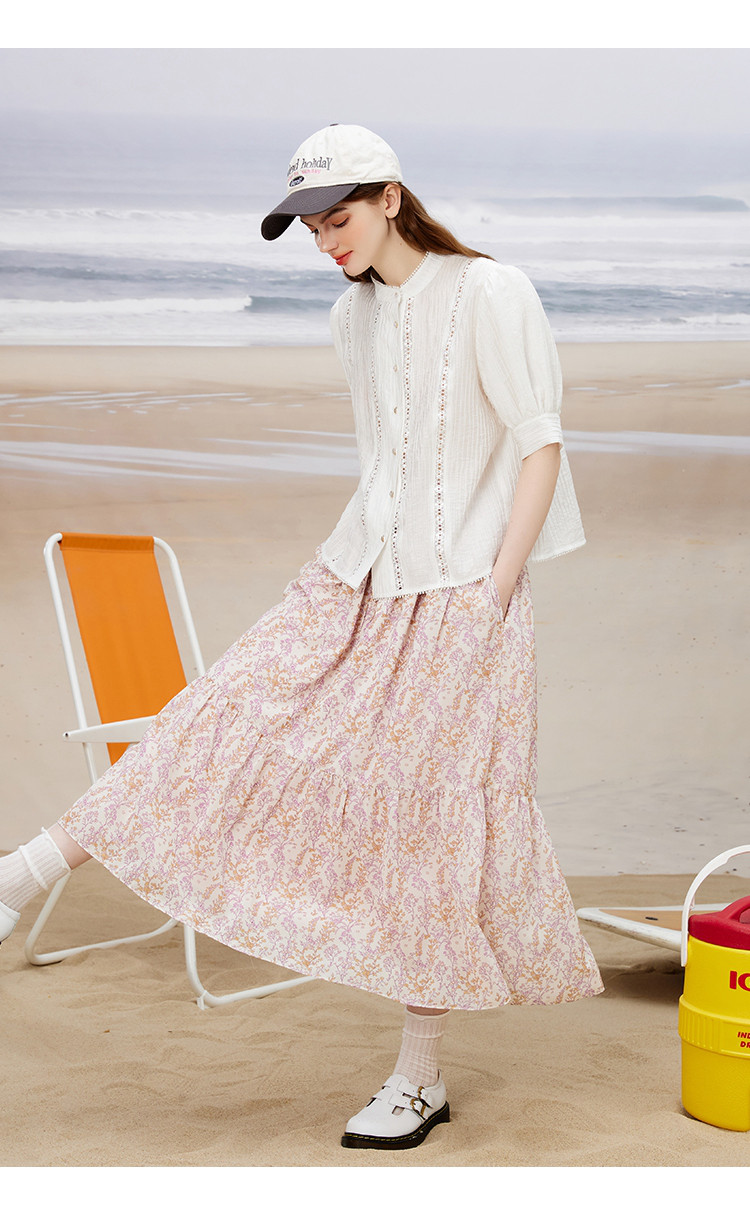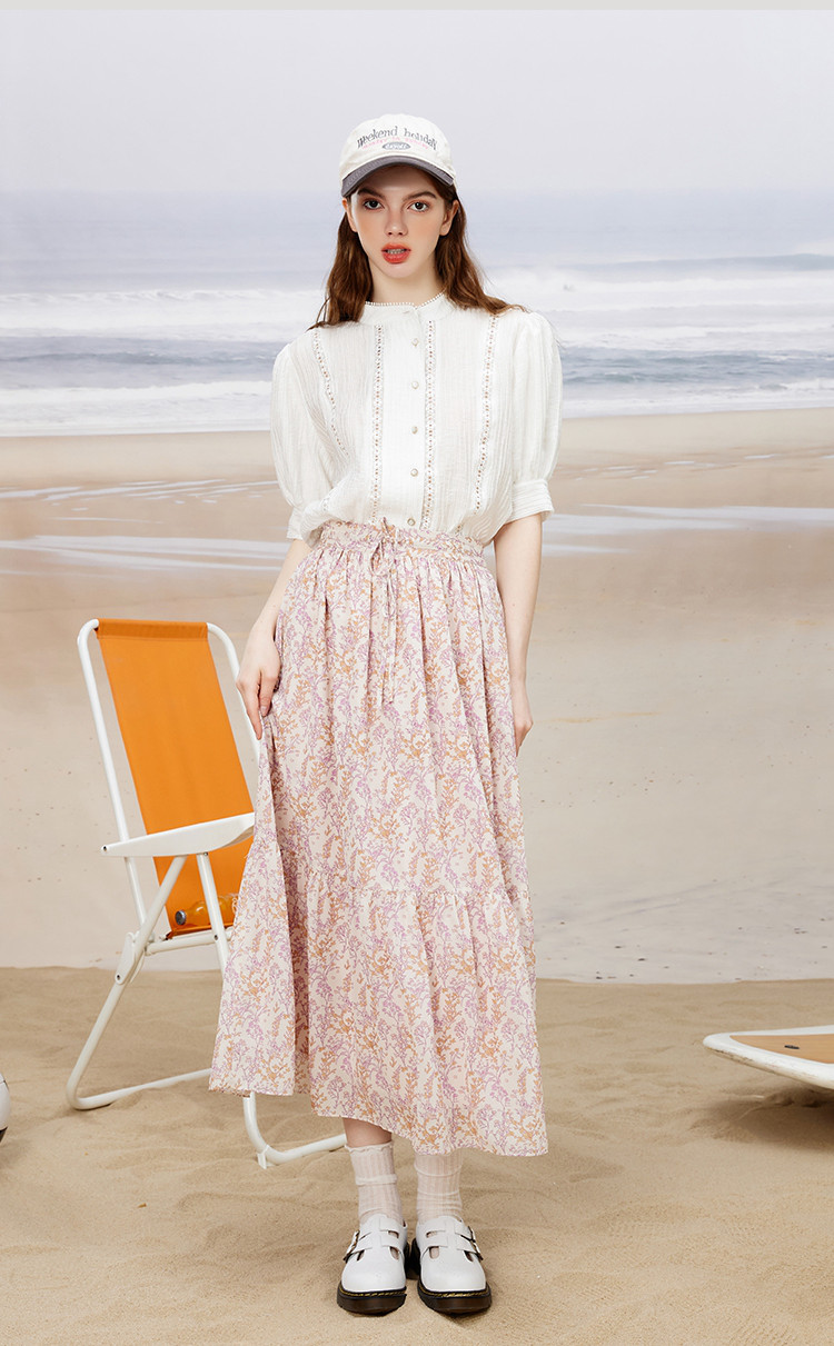 商品名称:甜美风碎花中长款百搭遮胯慵懒长裙夏季小清新半截裙 902557