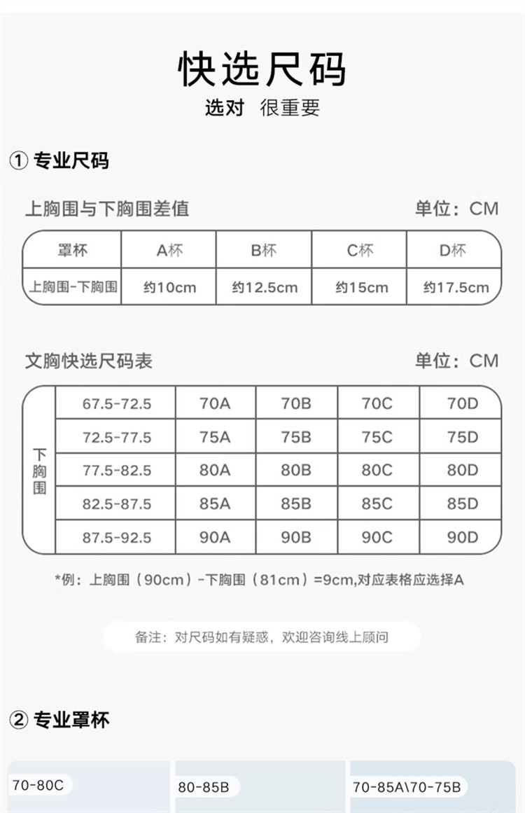 | 尺码 | 下胸围(cm) | 上胸围(cm) |