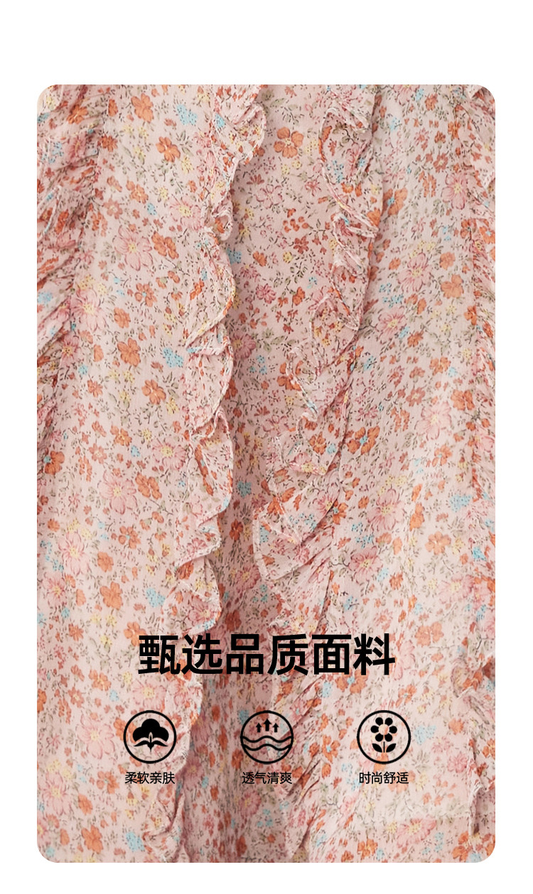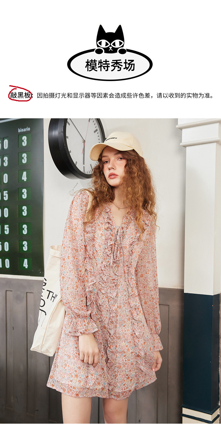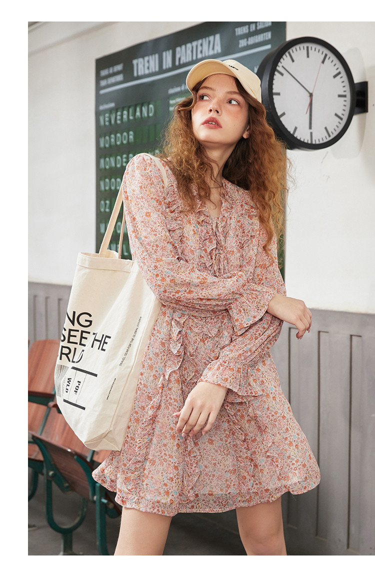 商品名称:荷叶边个性碎花设计长袖裙夏季郊游休闲度假风气质连衣裙 402269