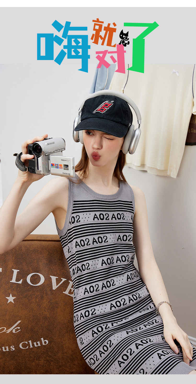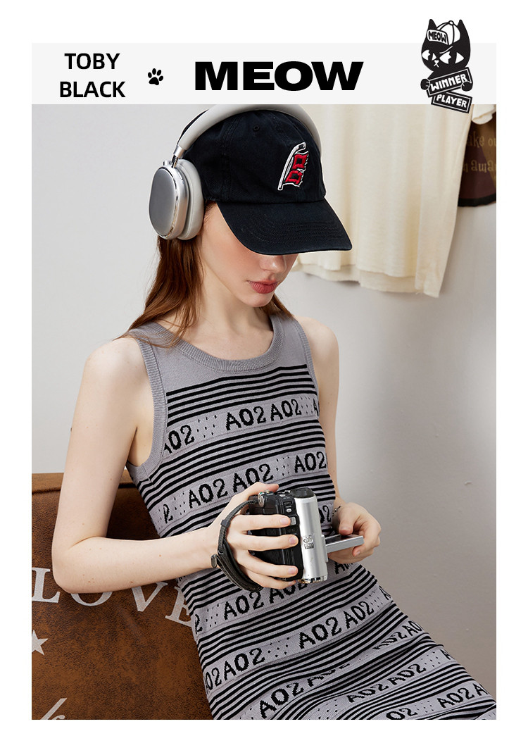 个性字母提花设计收腰显身材中长款连衣裙夏季休闲背心裙 404893