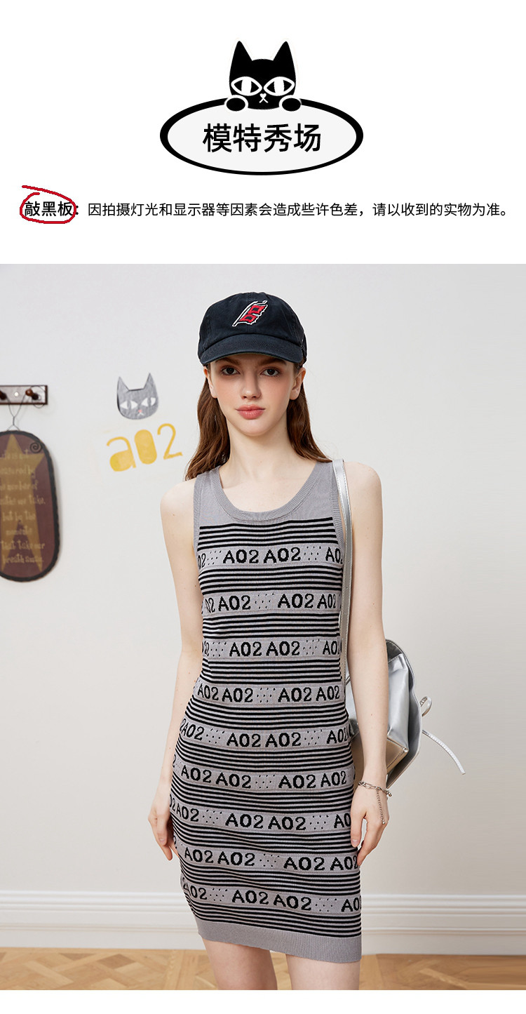 商品名称:个性字母提花设计收腰显身材中长款连衣裙夏季休闲背心裙 404893