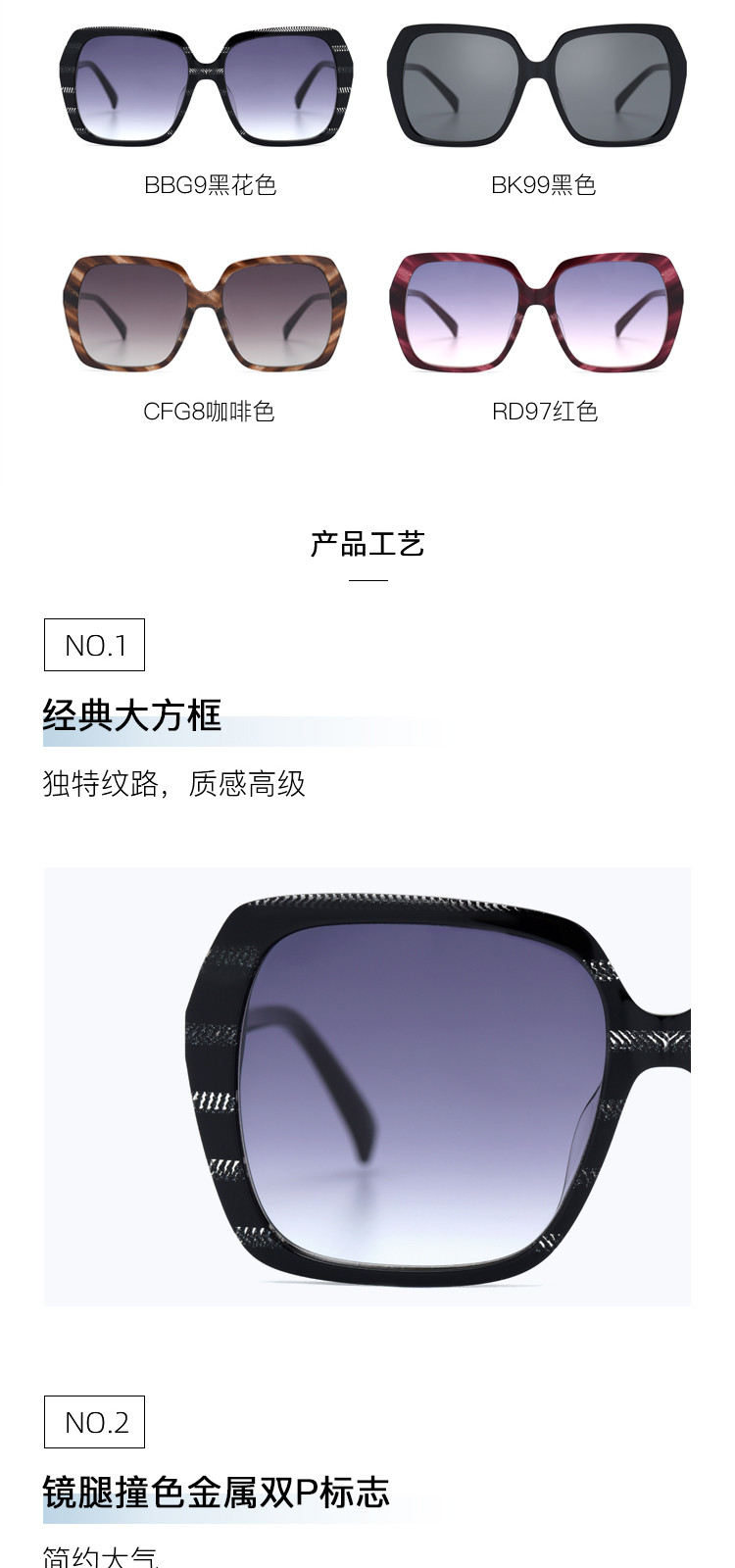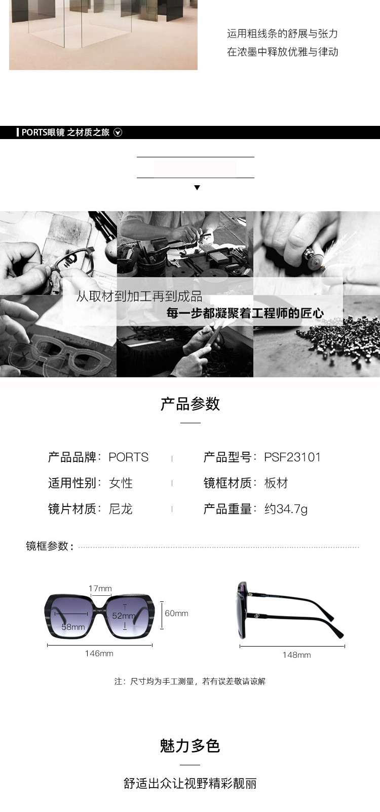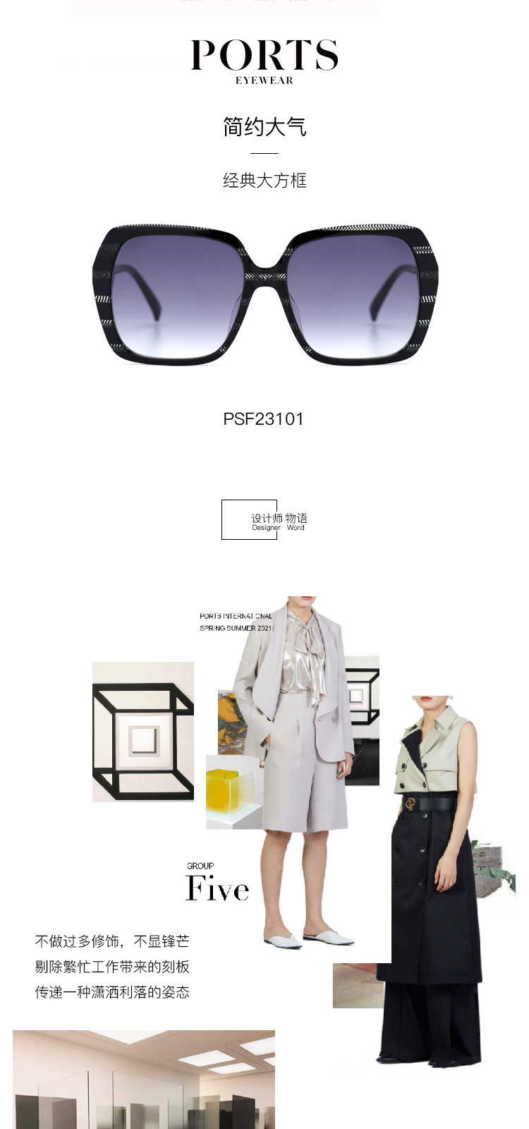 商品名称:PORTS女款简约大气经典大方框太阳镜PSF23101 021898