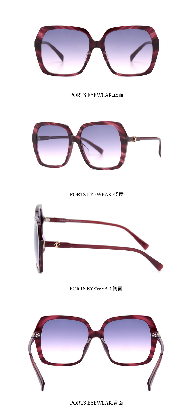 PORTS女款简约大气经典大方框太阳镜PSF23101 021898