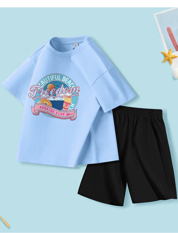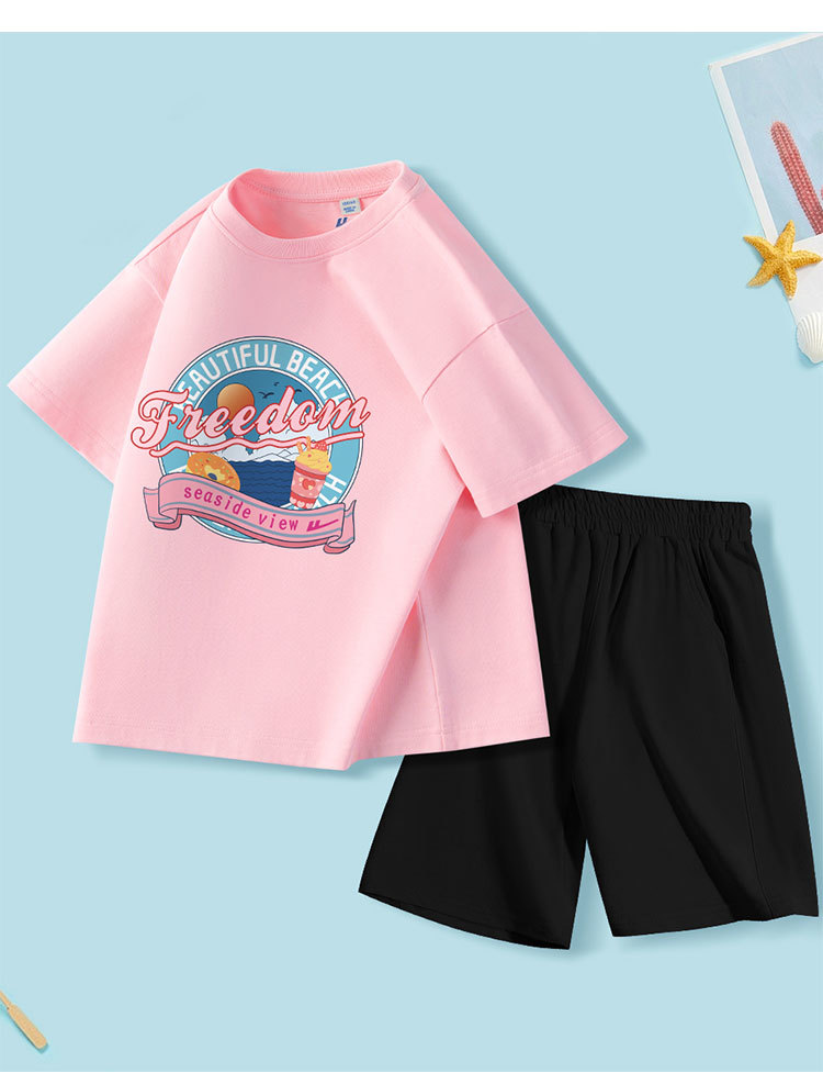 商品名称:女童套装夏季中大童夏装纯棉两件套薄款透气儿童运动衣服25休闲 489043