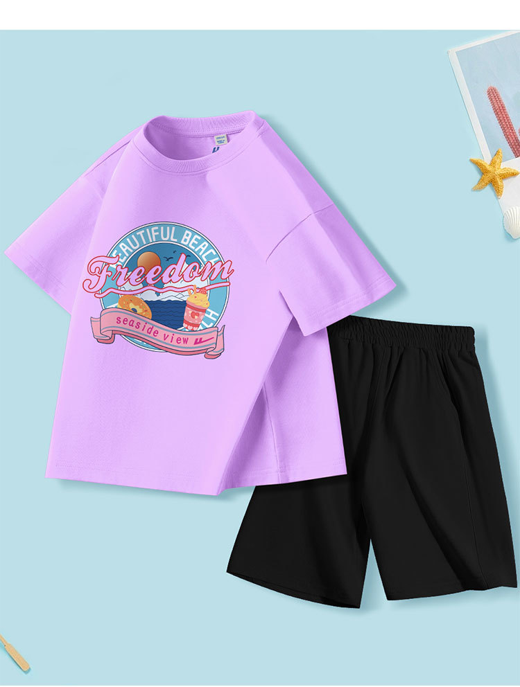 女童套装夏季中大童夏装纯棉两件套薄款透气儿童运动衣服25休闲 489043