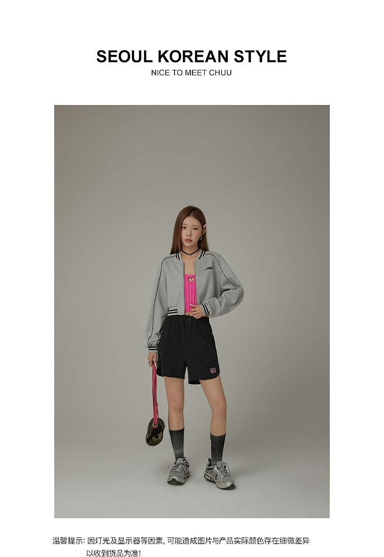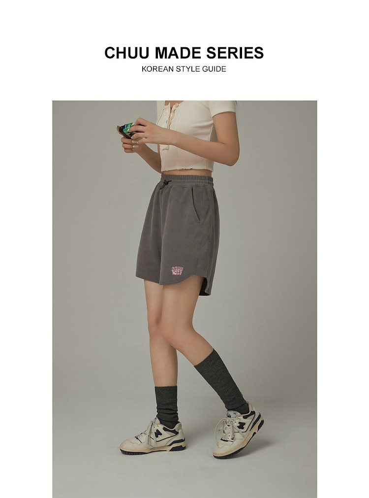 高腰休闲短裤女春秋简约抽绳百搭宽松显瘦运动裤子 359379