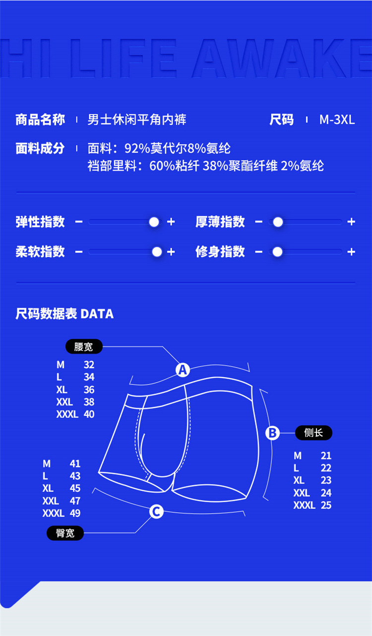 商品名称:断码捡漏【3A级抑菌】3条装男士内裤男莫代尔无痕平角裤四角裤 229658