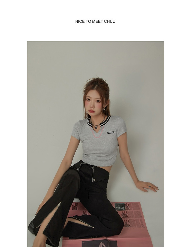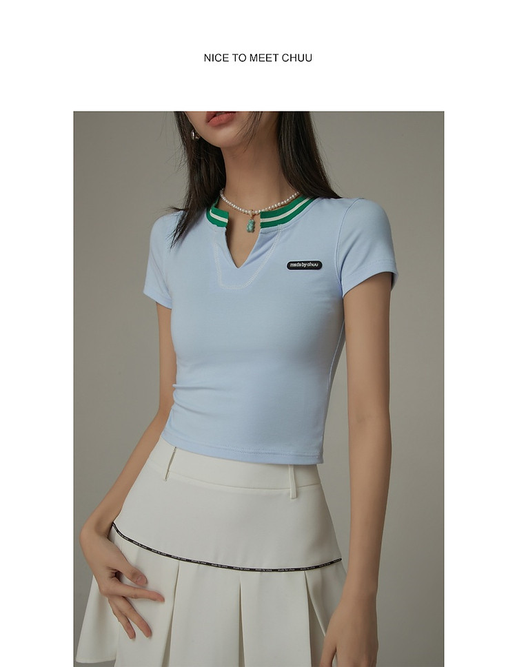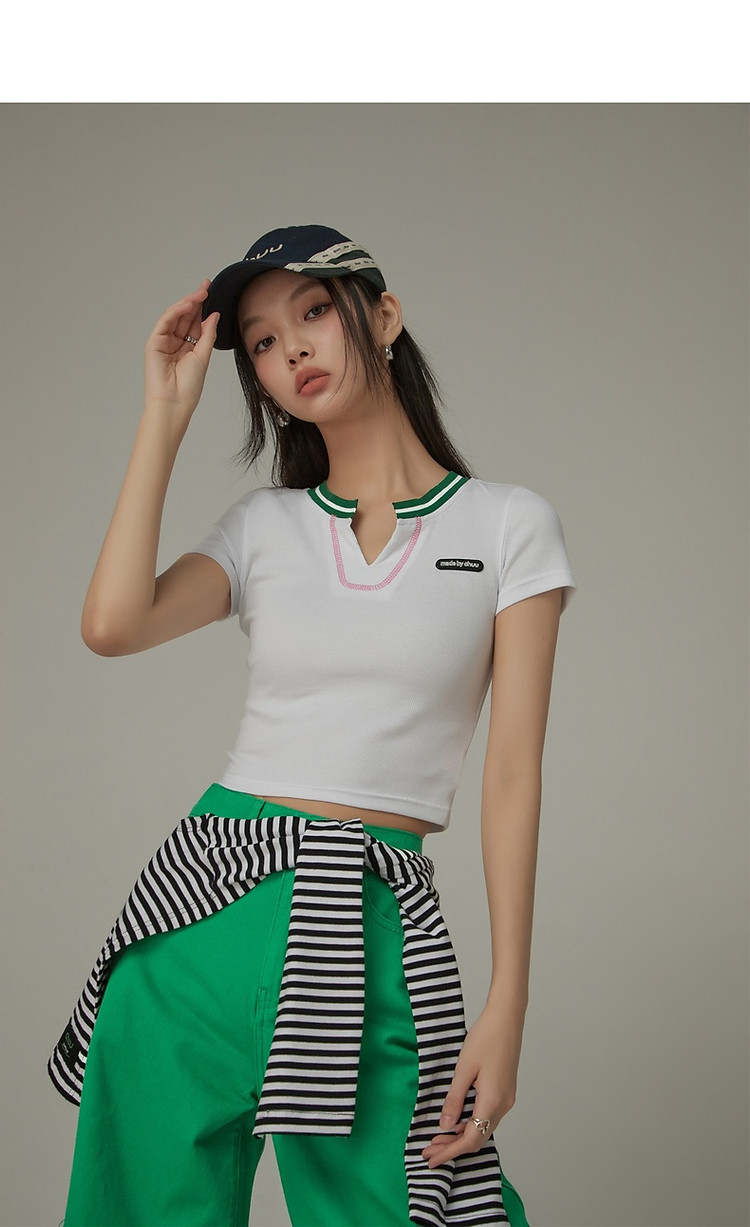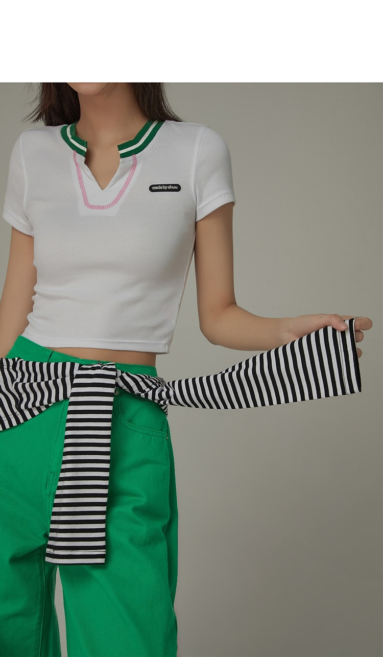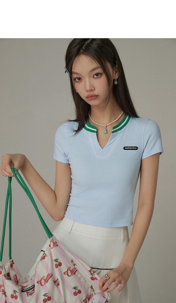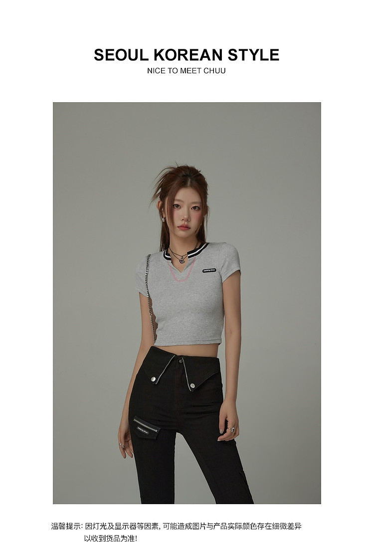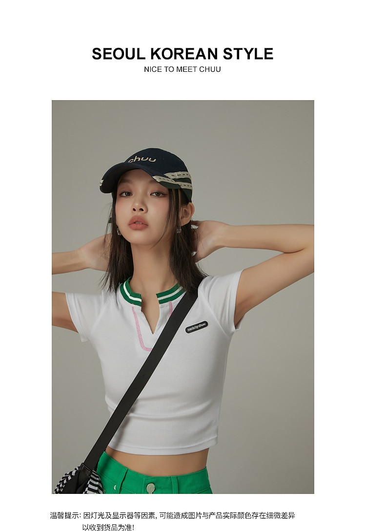 商品名称:设计感修身T恤女春夏辣妹个性显瘦简约休闲短袖上衣 234323