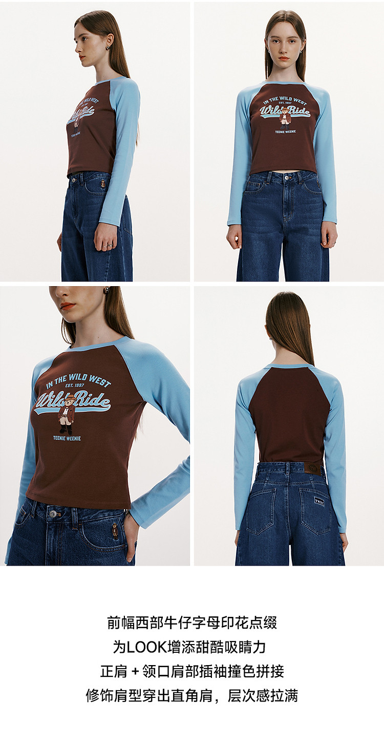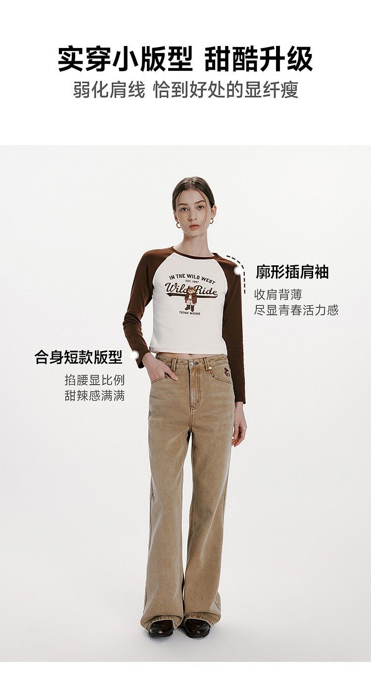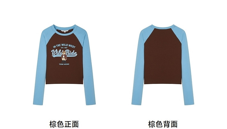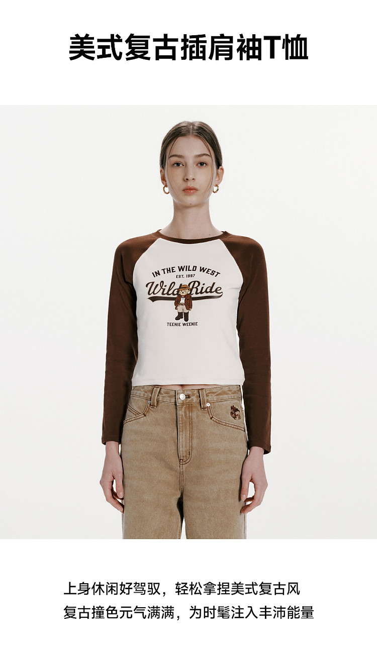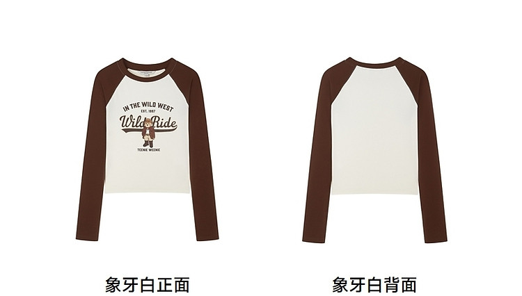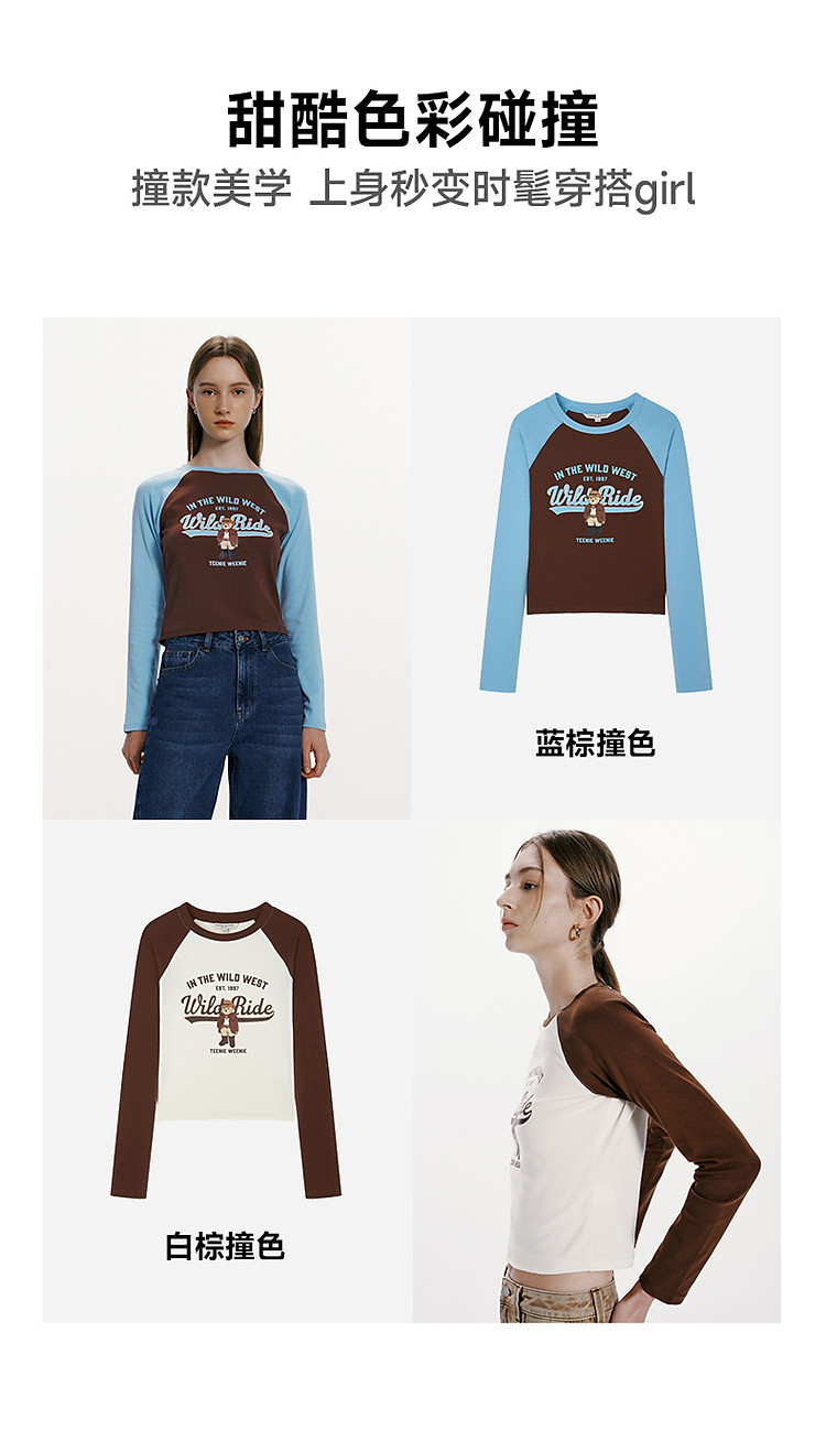 商品名称:长袖T恤小熊女装长袖T恤春秋款美式撞色插肩袖打底衫 692993