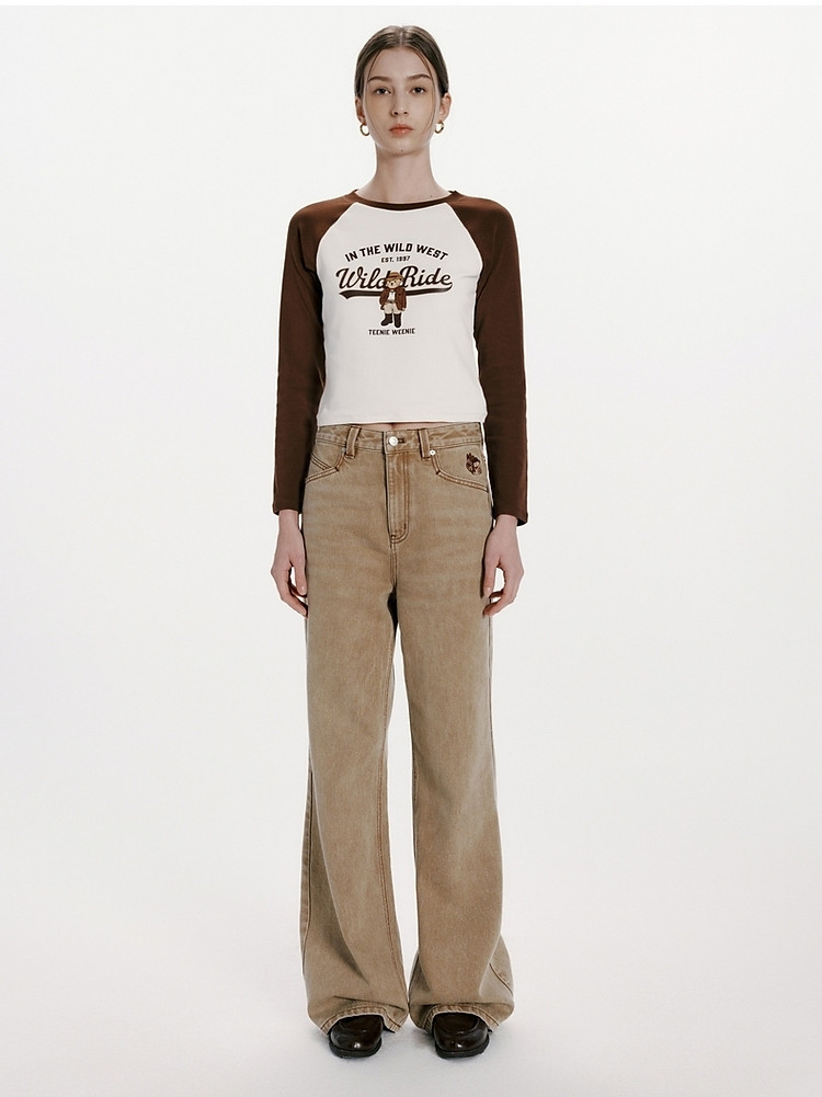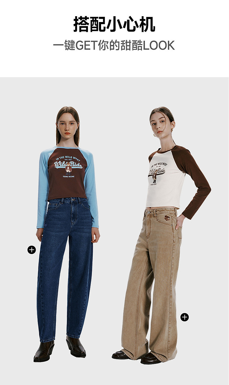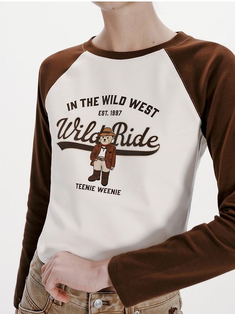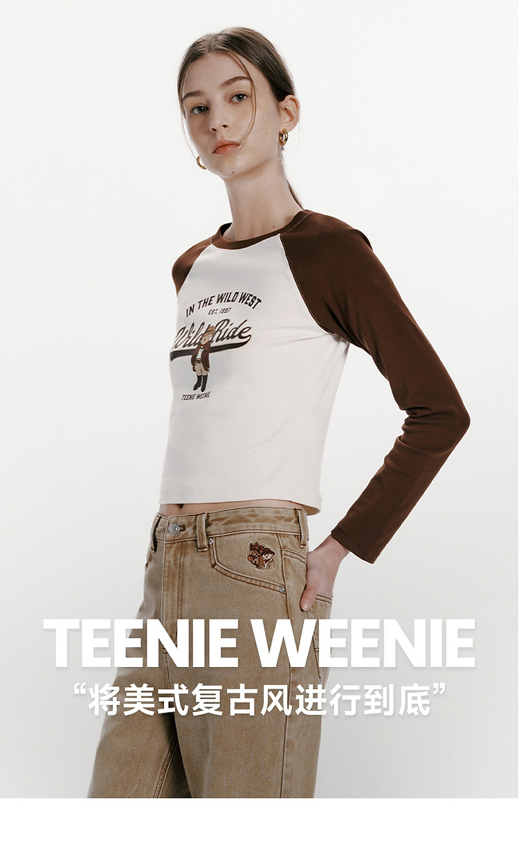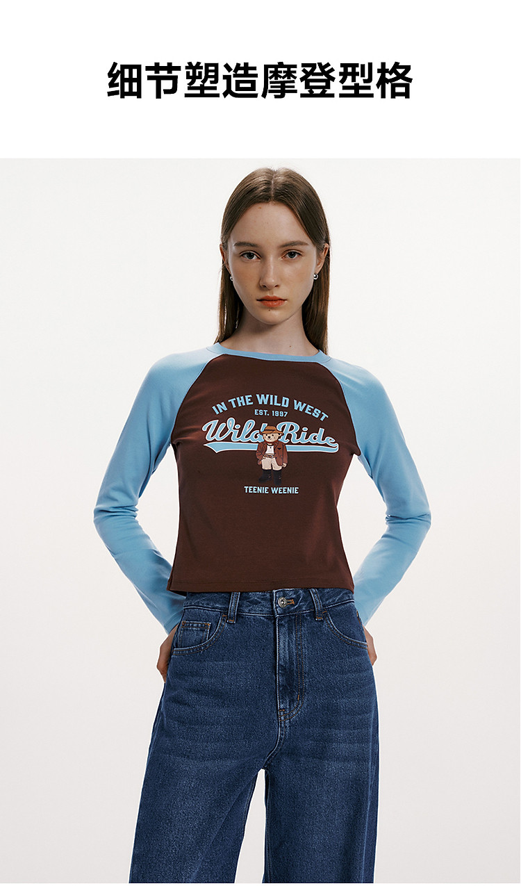 商品名称:长袖T恤小熊女装长袖T恤春秋款美式撞色插肩袖打底衫 692993
