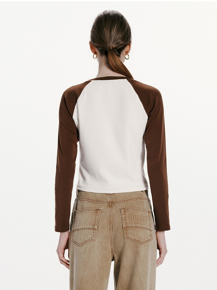 长袖T恤小熊女装长袖T恤春秋款美式撞色插肩袖打底衫 692993
