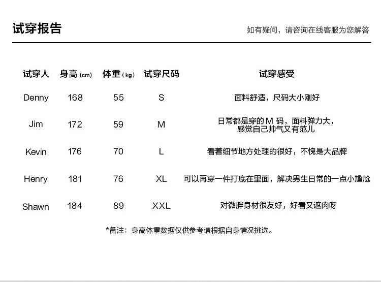 | S(推荐57~62kg) | 67.5 | 43.6 | 96 | 21.5 | 98 | 98 | 165/84A |