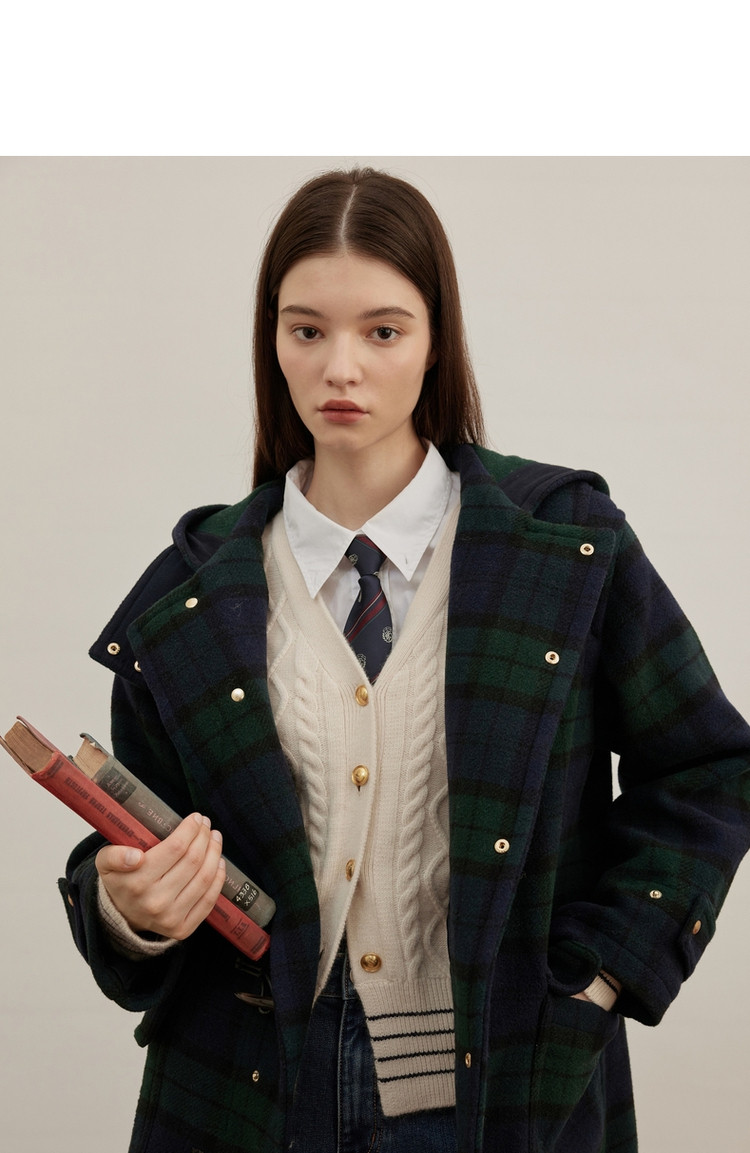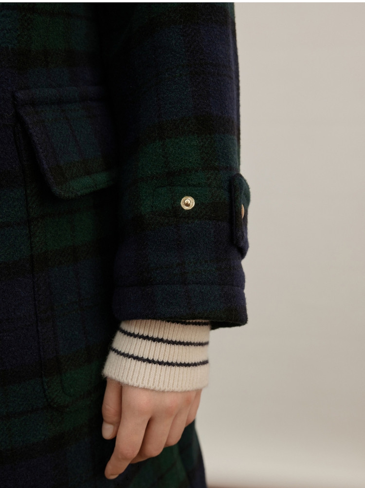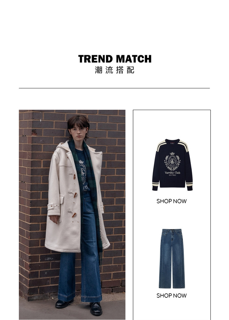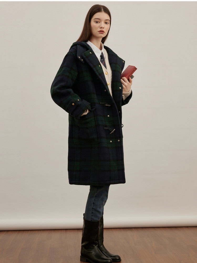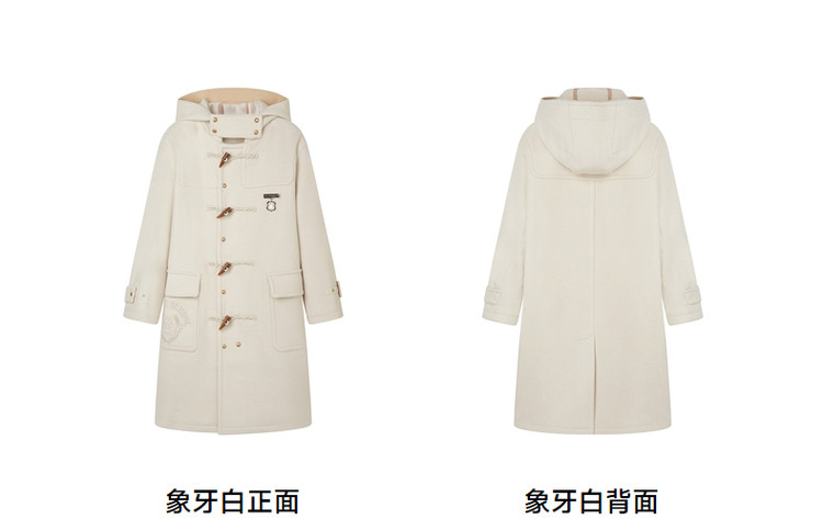 商品名称:毛呢大衣女学院风绵羊毛混纺宽松长款牛角扣毛呢外套女 601089