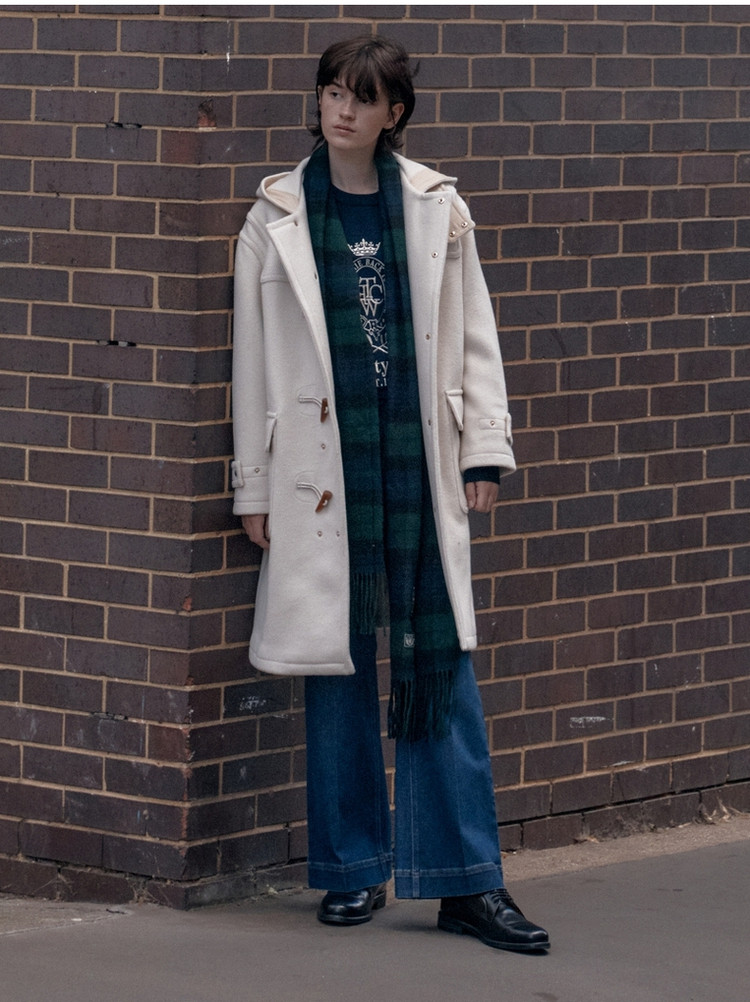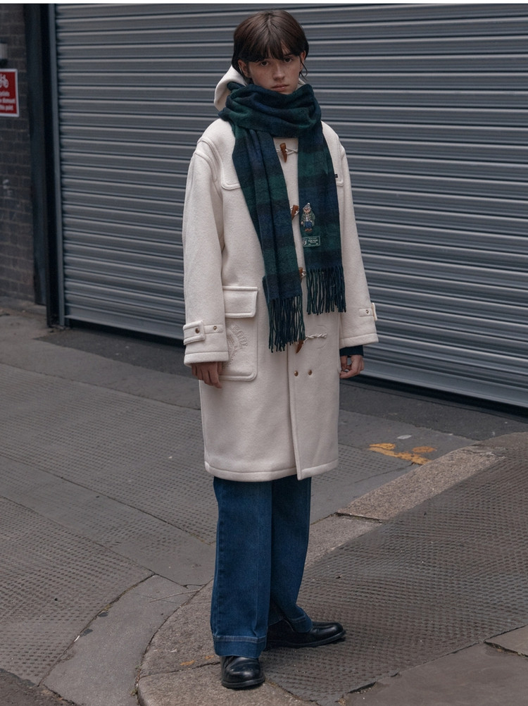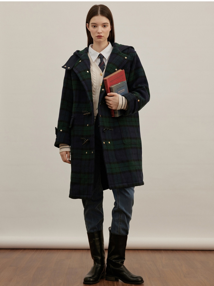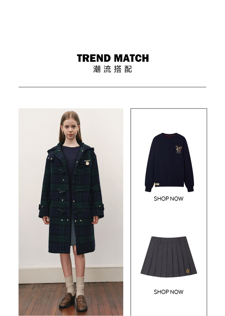 商品名称:毛呢大衣女学院风绵羊毛混纺宽松长款牛角扣毛呢外套女 601089