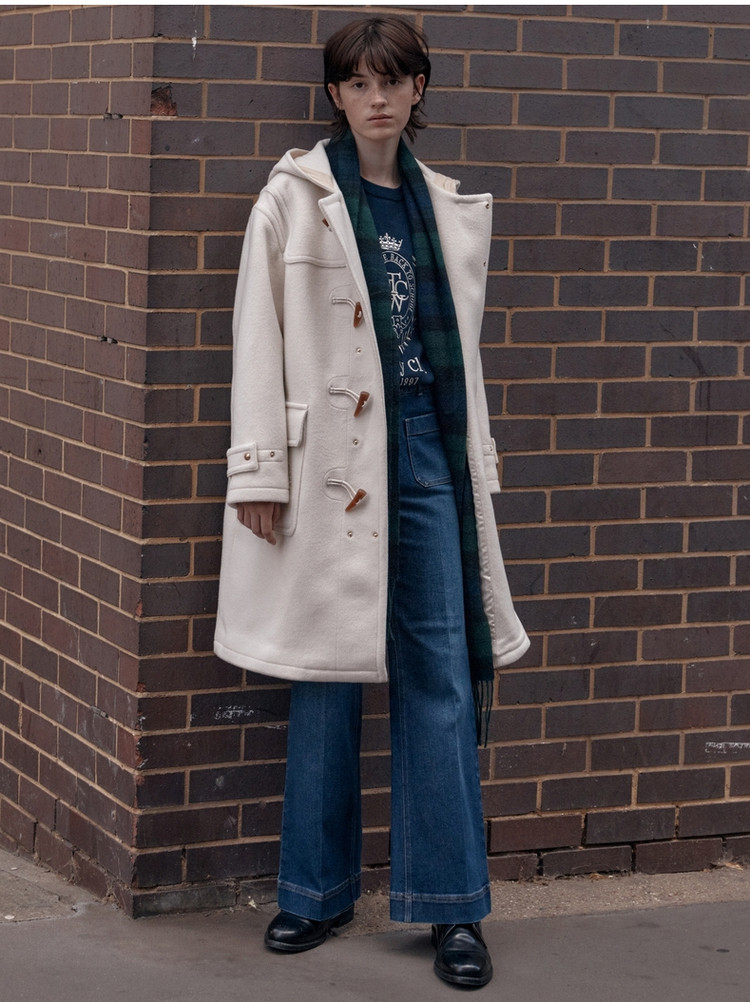 毛呢大衣女学院风绵羊毛混纺宽松长款牛角扣毛呢外套女 601089