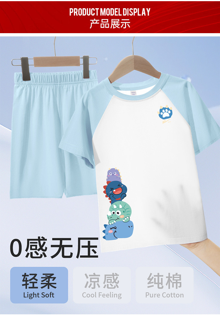 商品名称:【纯棉童装】儿童睡衣夏装家居服套装男童薄款短袖男孩透气空调服 787859