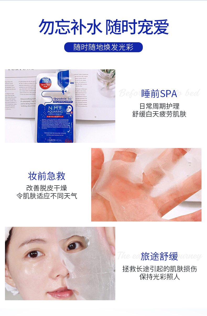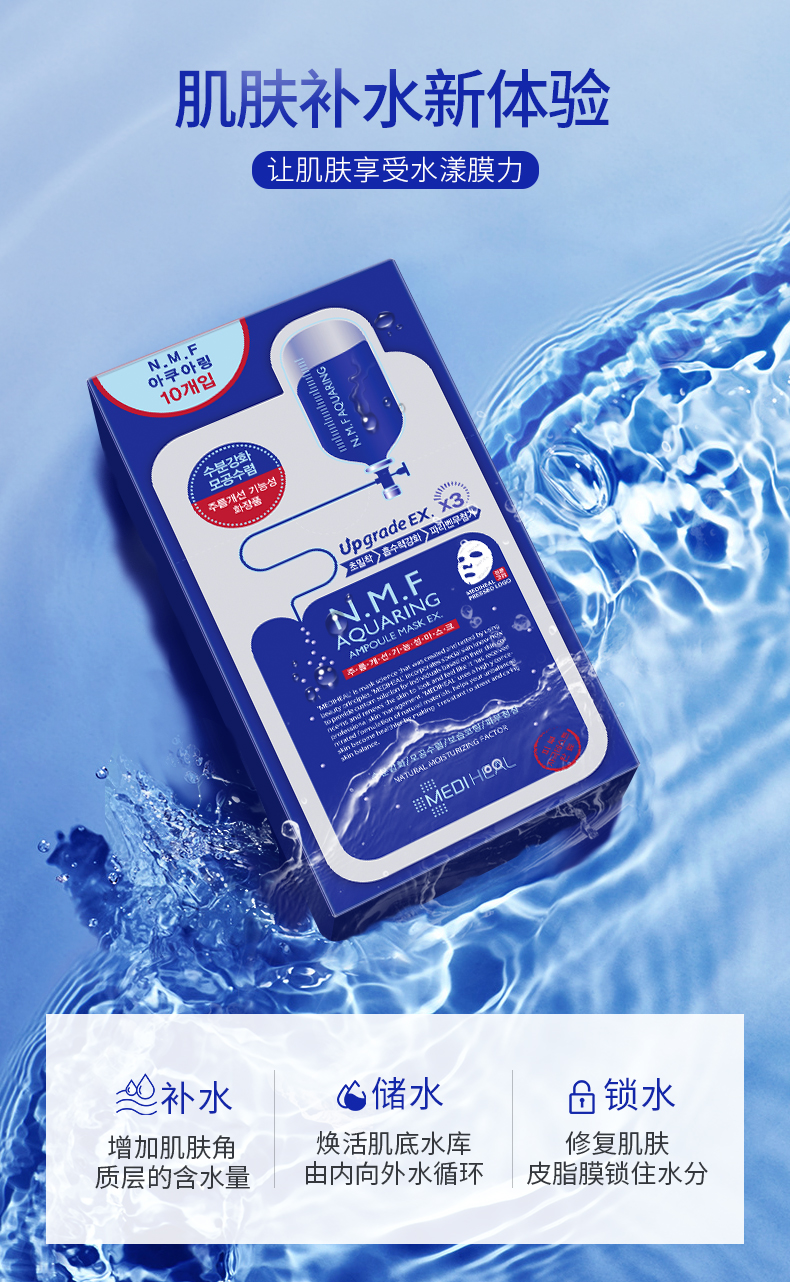 美迪惠尔可莱丝面膜水库韩国水润针剂面膜女补水保湿10片*2盒