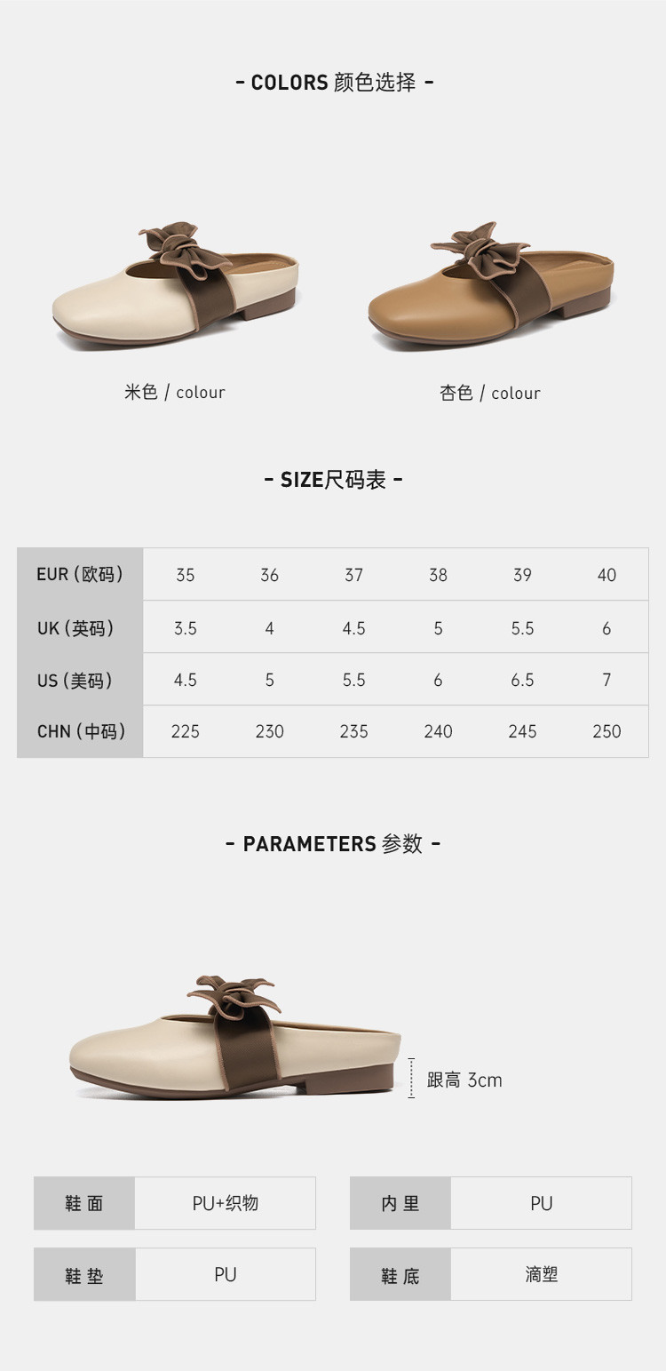 商品名称:女士拖鞋夏季女鞋通勤女士单鞋气质方头休闲百搭穆勒鞋单鞋 441743