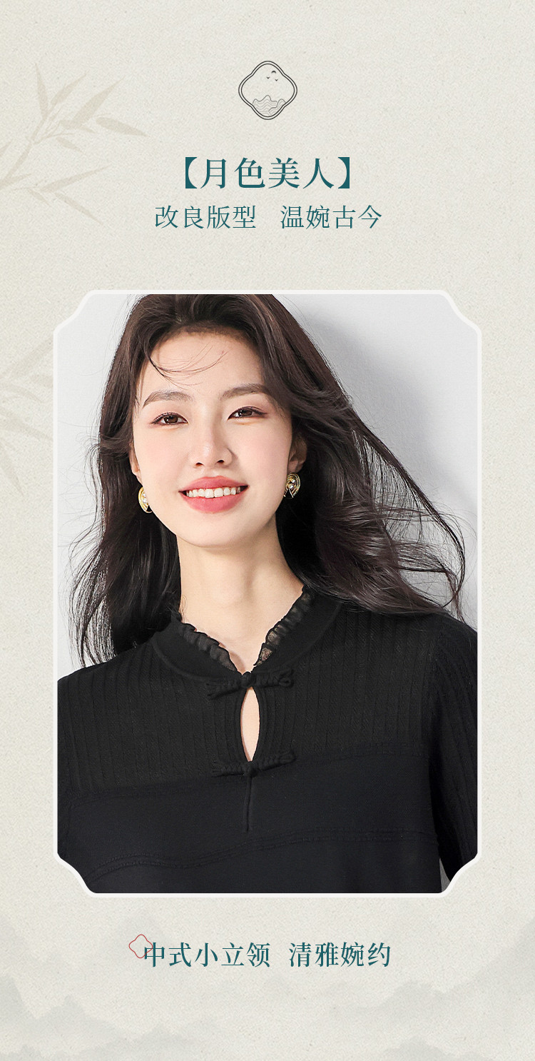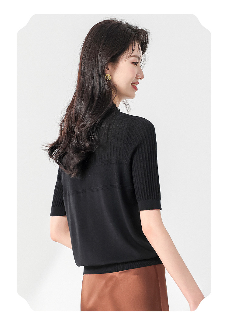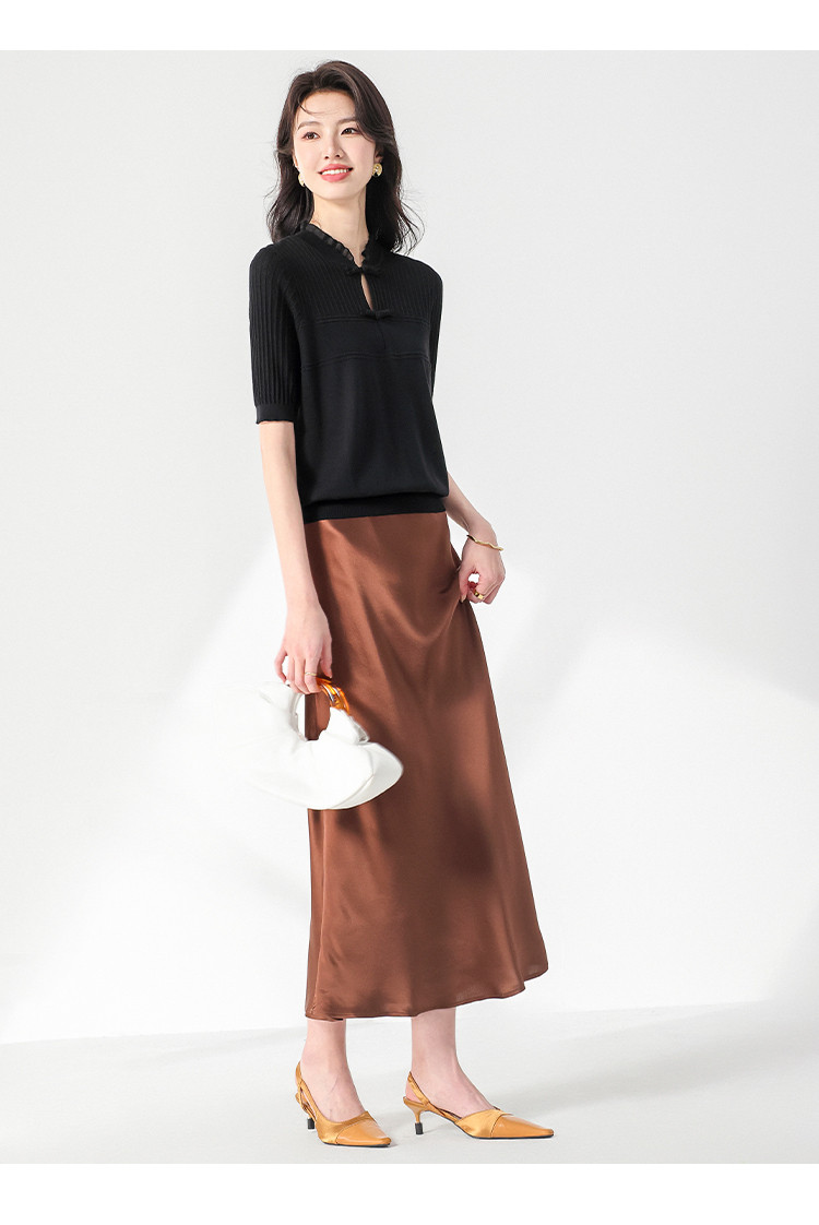 商品名称:【国风】新中式盘扣含桑蚕丝针织衫女夏短袖T恤淑女衬衣上衣 091347