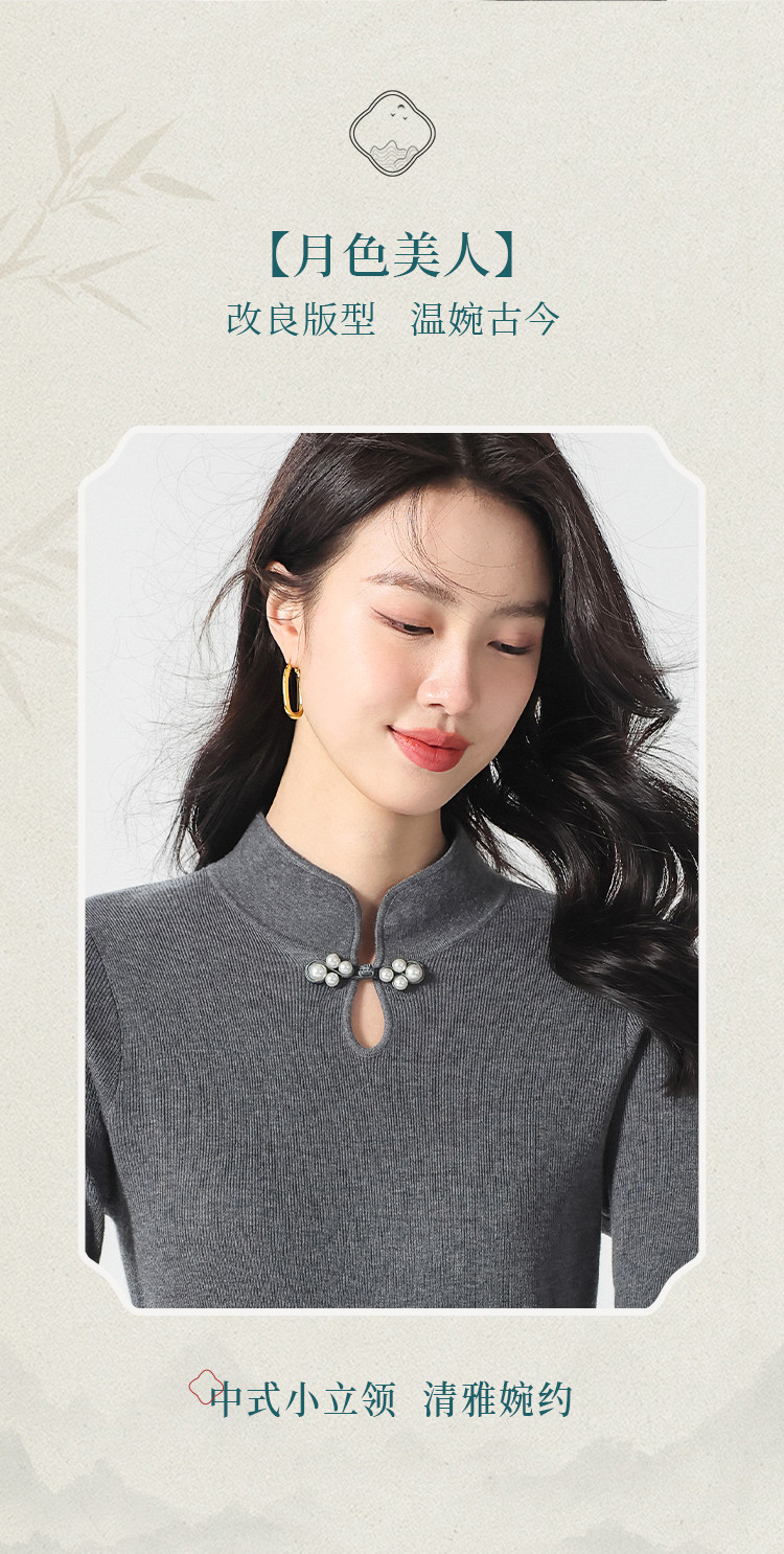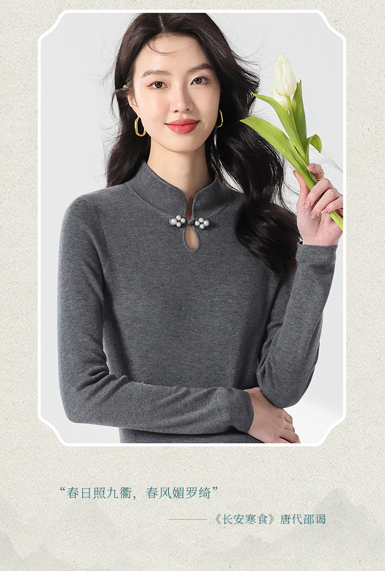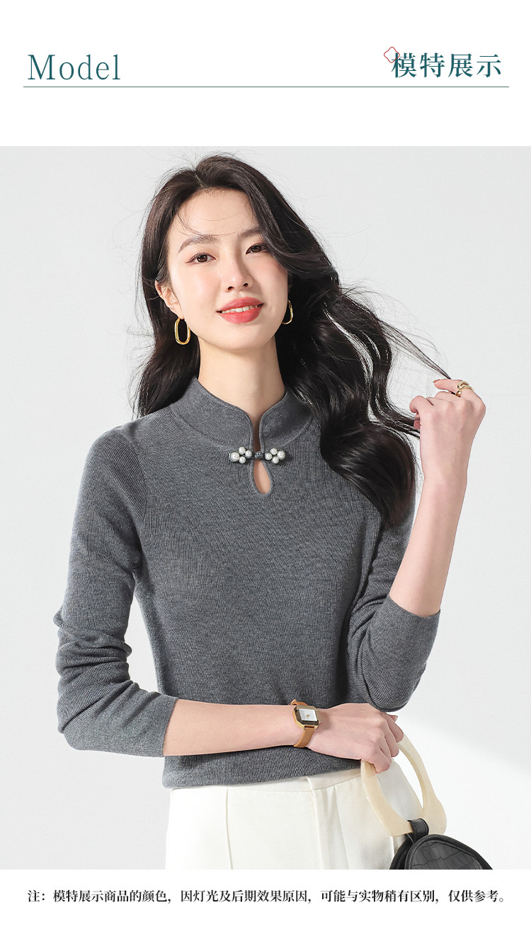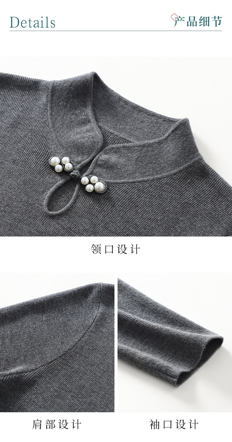 商品名称:国风新中式轻薄透气含桑蚕丝立领针织打底衫夏款长袖T恤妈妈装 149907