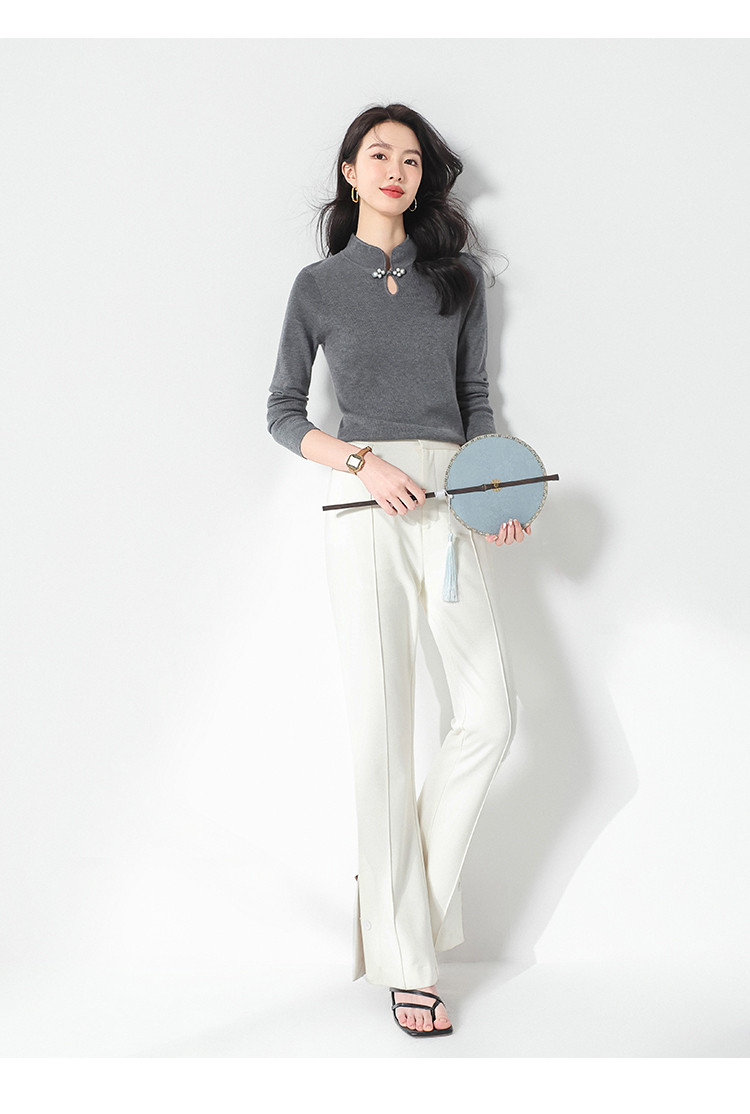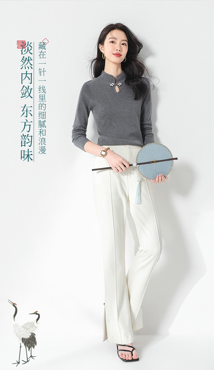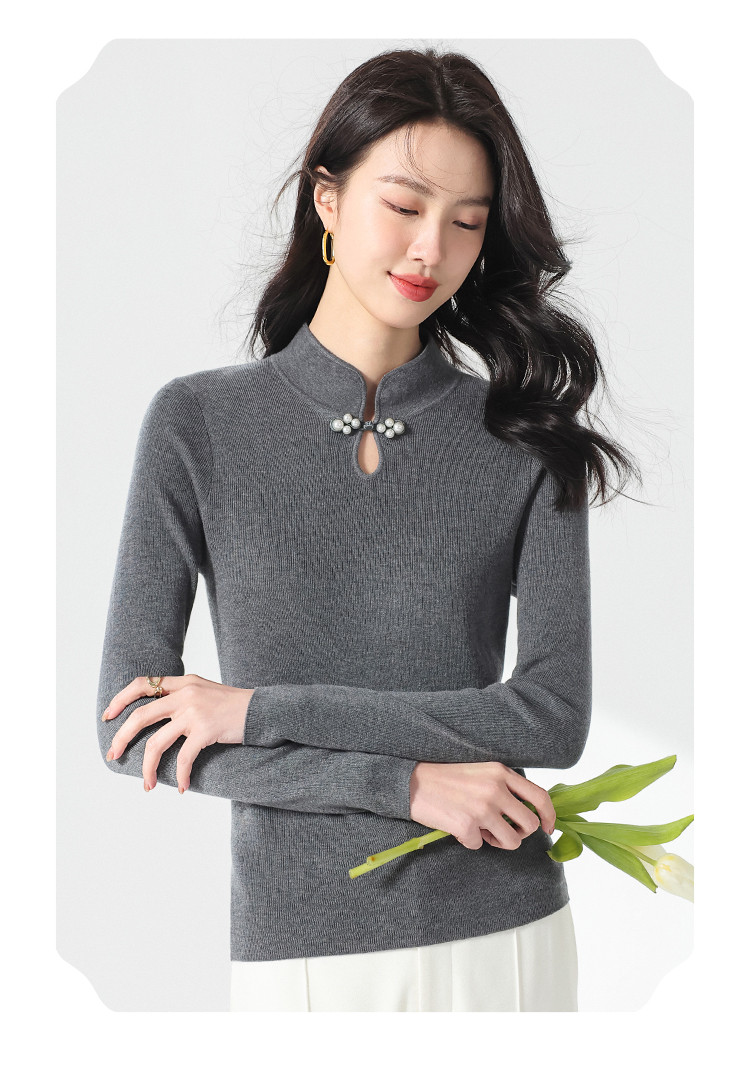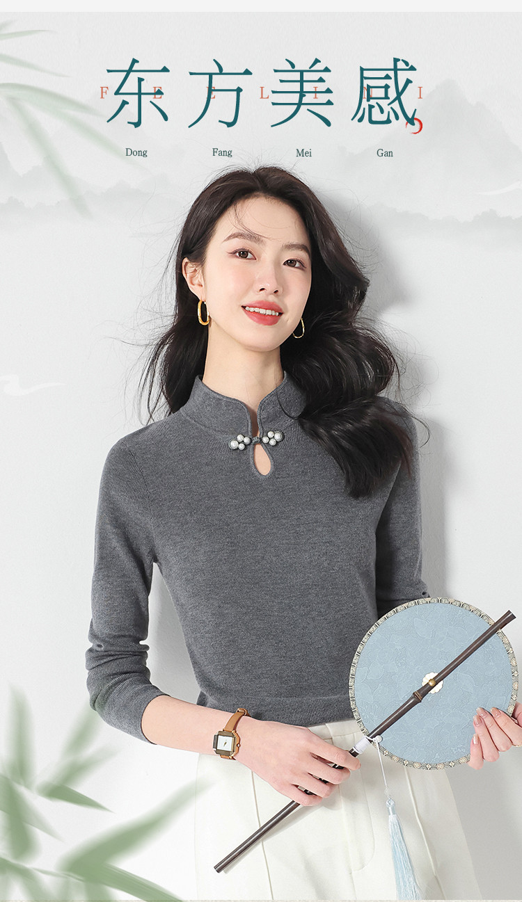 商品名称:国风新中式轻薄透气含桑蚕丝立领针织打底衫夏款长袖T恤妈妈装 149907